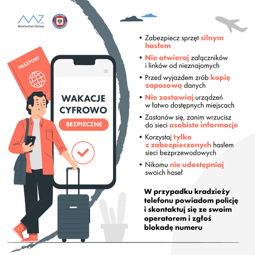 Lato to beztroski czas na relaks. Nieodłącznym towarzyszem wyjazdów są urządzenia mobilne. Korzystając z nich zadbajmy o swoje cyfrowe bezpieczeństwo.