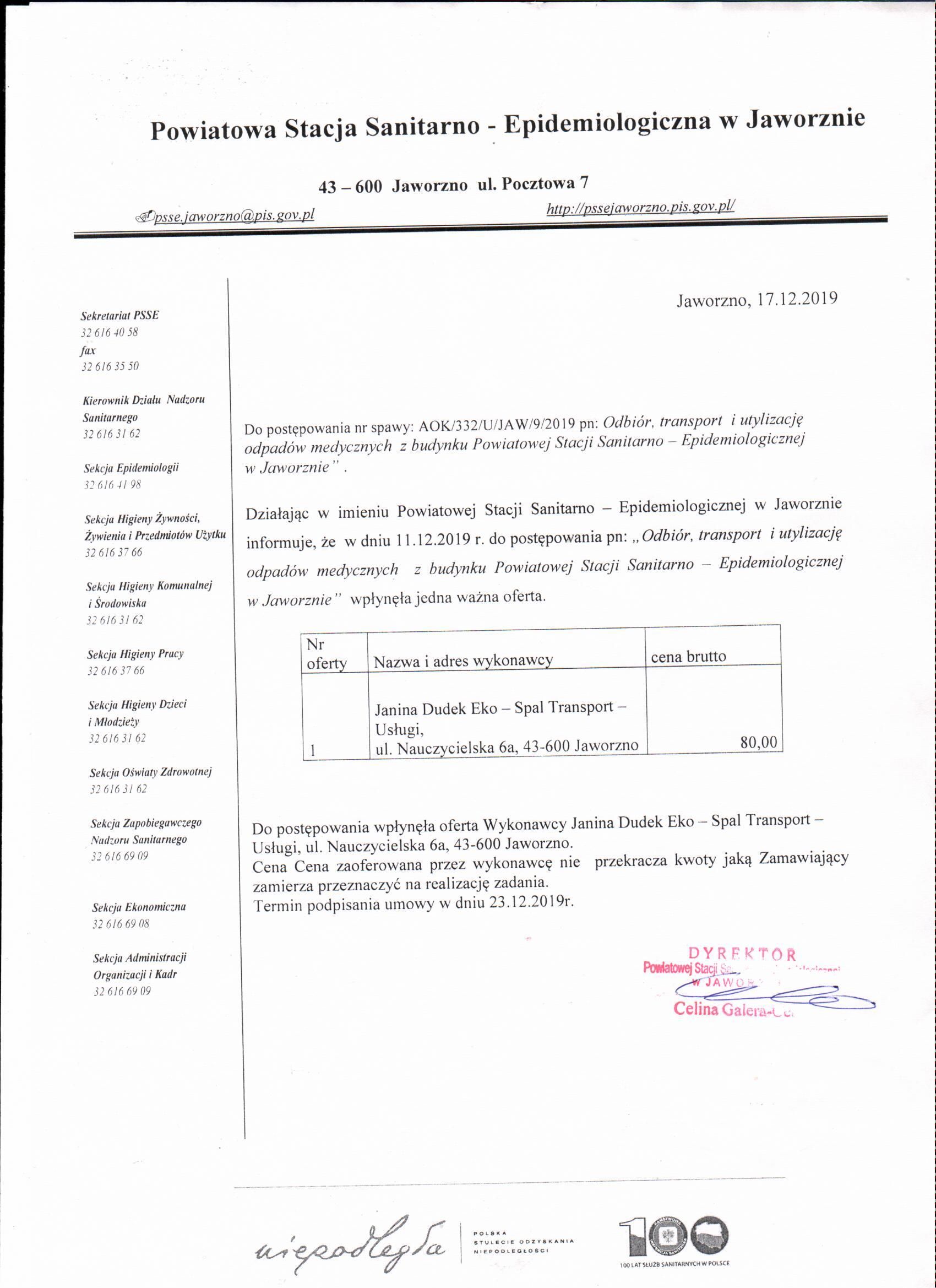 OdbiorTransportUtylizacjaOdpadowMedycznychZpsseJaworzno-ZapytanieOfertowe.pdf 0.67MB Odbiór, transport i utylizacja odpadów medycznych z budynku Powiatowej Stacji Sanitarnej w Jaworznie - Wynik