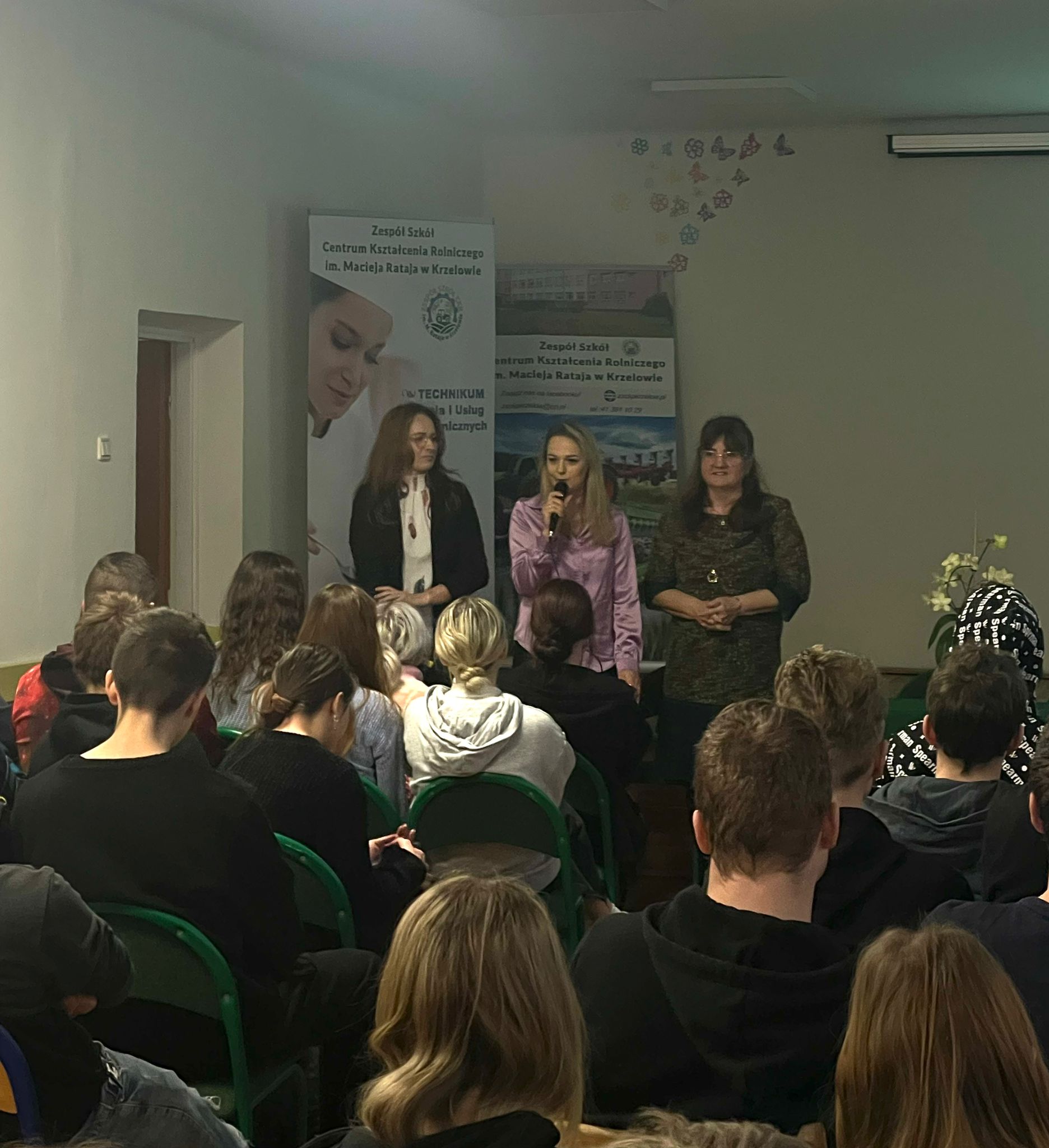 Spotkanie edukacyjne dla uczniów w Zespole Szkół Centrum Kształcenia Praktycznego im. M. Rataja w Krzelowie