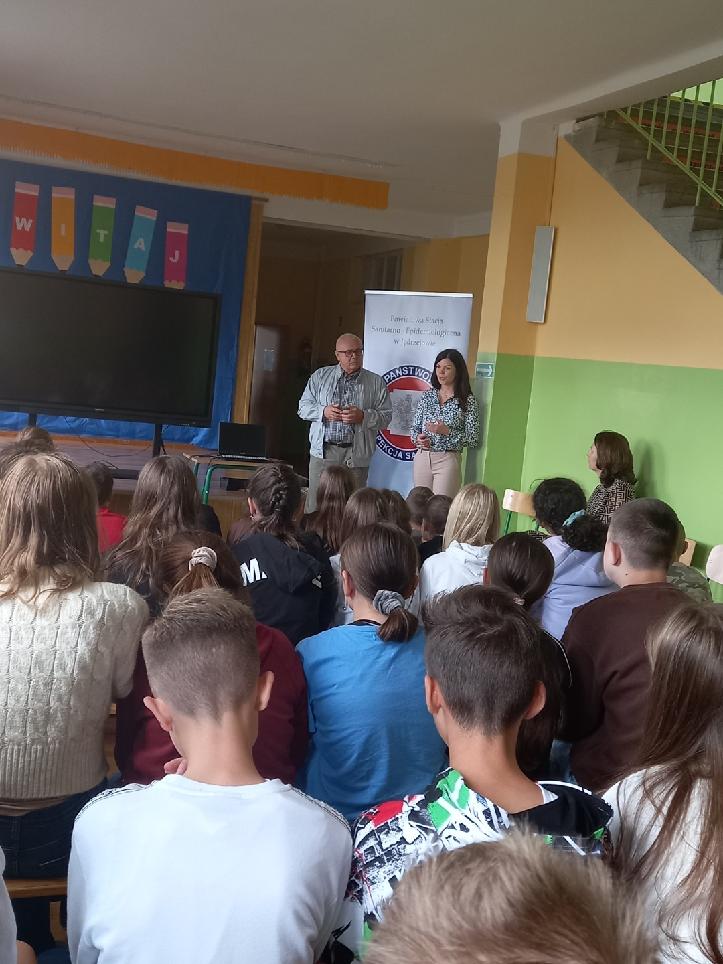 12 września br przedstawiciele Powiatowej Stacji Sanitarno – Epidemiologicznej w Jędrzejowie mieli przyjemność przeprowadzić spotkanie edukacyjne z uczniami Szkoły Podstawowej w Zespole Placówek Oświatowych w Kozłowie. Tematem przewodnim spotkania było uświadomienie potrzeby dbania o własne zdrowie oraz kształtowanie umiejętności niezbędnych do jego ochrony. Uczniowie obejrzeli film, dzięki któremu poznali historię chorób zakaźnych i pozytywne działanie szczepionek. Podczas spotkania prowadzona była dystrybucja edukacyjnych malowanek zachęcających do dbania o higienę osobistą.
