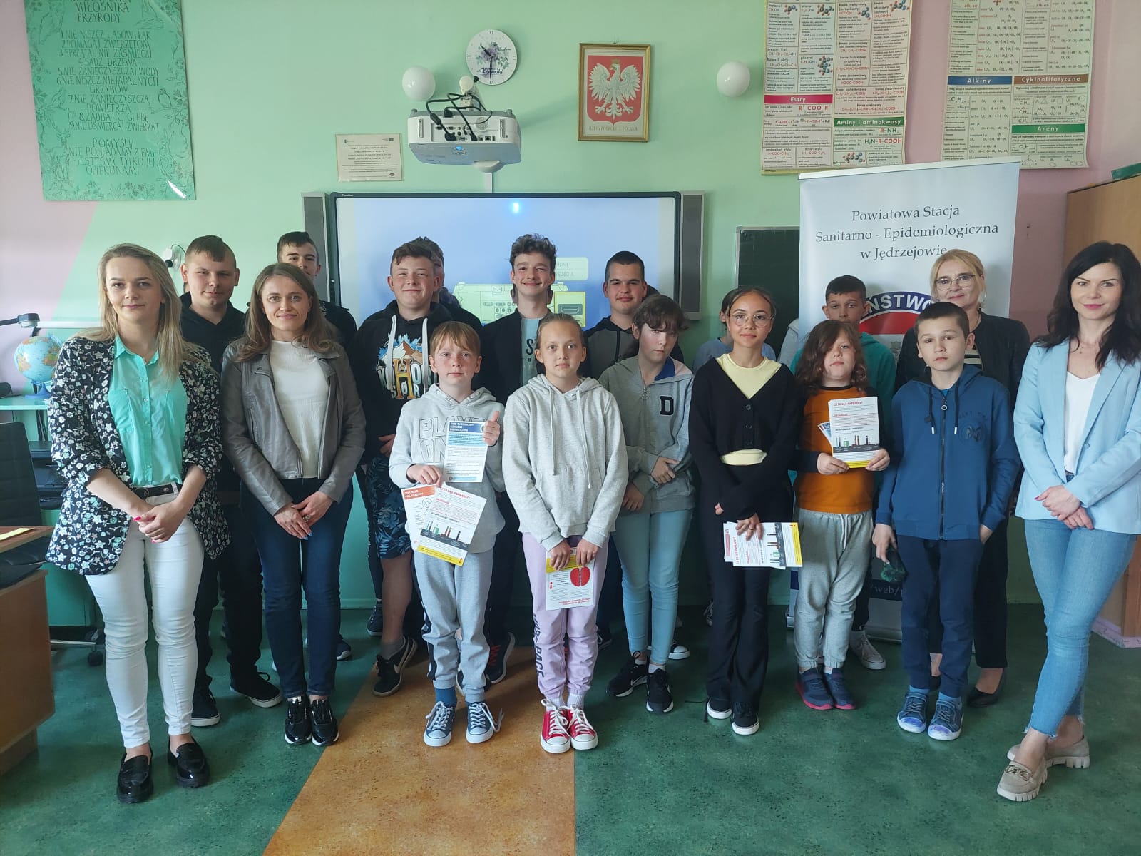 W dniu 12 maja w Szkole Podstawowej im. Jednostki Ziemi Kieleckiej w Mierzawie Przedstawiciele Powiatowej Stacji Sanitarno – Epidemiologicznej w Jędrzejowie przeprowadzili spotkanie edukacyjne dotyczące profilaktyki palenia tytoniu oraz szkodliwości używania wszelkich urządzeń elektronicznych dostarczających nikotynę (e-papierosy). Uczniowie podczas spotkania dowiedzieli się jak szkodliwe jest palenie oraz korzystanie z e-papierosów. Podkreślone zostało silne działanie uzależniające nikotyny i jej niekorzystny wpływ na rozwój młodego organizmu. Podsumowaniem spotkania były warsztaty edukacyjne podczas których młodzież mogła wykazać się zdobytą wiedzą. Prowadzona była dystrybucja materiałów edukacyjnych na ww. tematy.
