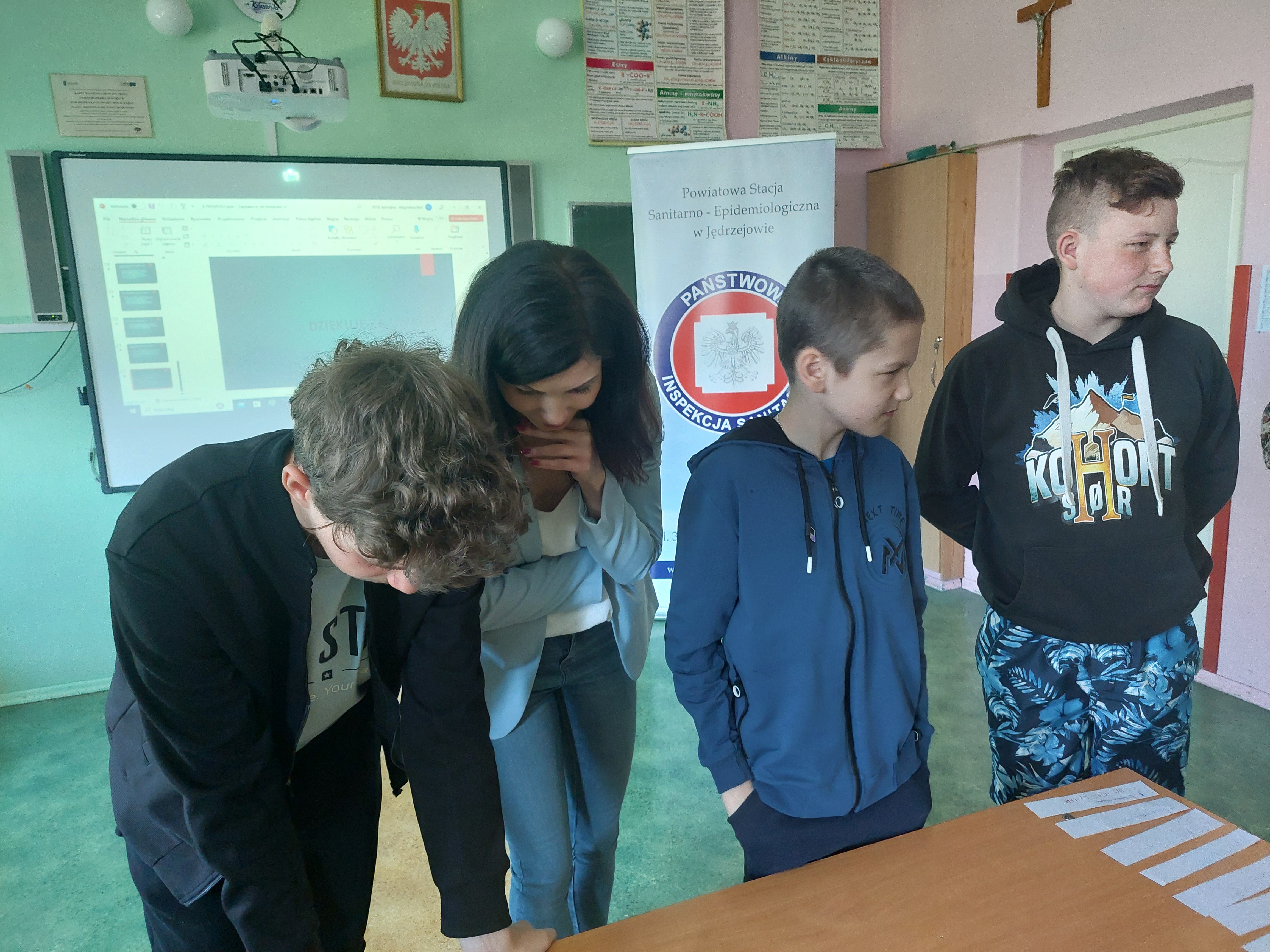 Spotkanie edukacyjne w Szkole Podstawowej im. Jednostki Ziemi Kieleckiej w Mierzawie dotyczące profilaktyki palenia tytoniu oraz szkodliwości używania wszelkich urządzeń elektronicznych dostarczających nikotynę (e-papierosy).