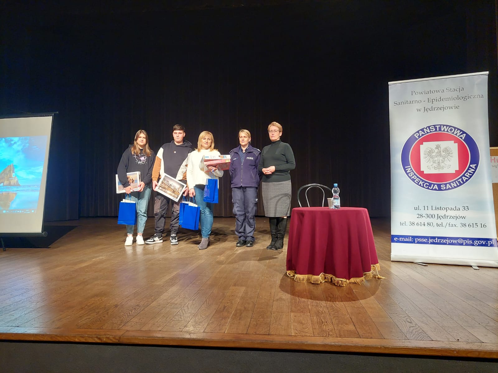 W dniu 27.11.2023 w Centrum Kultury w Jędrzejowie, Państwowy Powiatowy Inspektor Sanitarny w Jędrzejowie wraz z Komendą Powiatowej Policji w Jędrzejowie zorganizowali spotkanie edukacyjne z Panem Romanem Latoszyńskim, edukatorem z ramienia Krajowego Centrum ds. AIDS. Celem spotkania było upowszechnienie wiedzy na temat profilaktyki HIV/AIDS, przeciwdziałanie podejmowaniu przez młodzież zachowań ryzykownych, oraz promocja zdrowego stylu życia wolnego od nałogów. Spotkanie zakończyło się licznymi pytaniami od uczniów. Pan Roman Latoszyński udzielał odpowiedzi na zadawane pytania z własnego doświadczenia i z pracy zawodowej. Młodzież wzbogaciła swoją wiedzę na temat profilaktyki zakażeń wirusem HIV oraz poszerzyła wiedzę na temat innych chorób przenoszonych drogą płciową. Podczas spotkania ogłoszono wyniki konkursu plastyczny pt. „HIV nie wybiera Ty możesz!”. Zostało zorganizowane również stoisko informacyjne dotyczące profilaktyki HIV/AIDS. Prowadzona była dystrybucja materiałów edukacyjnych na w/w tematy.