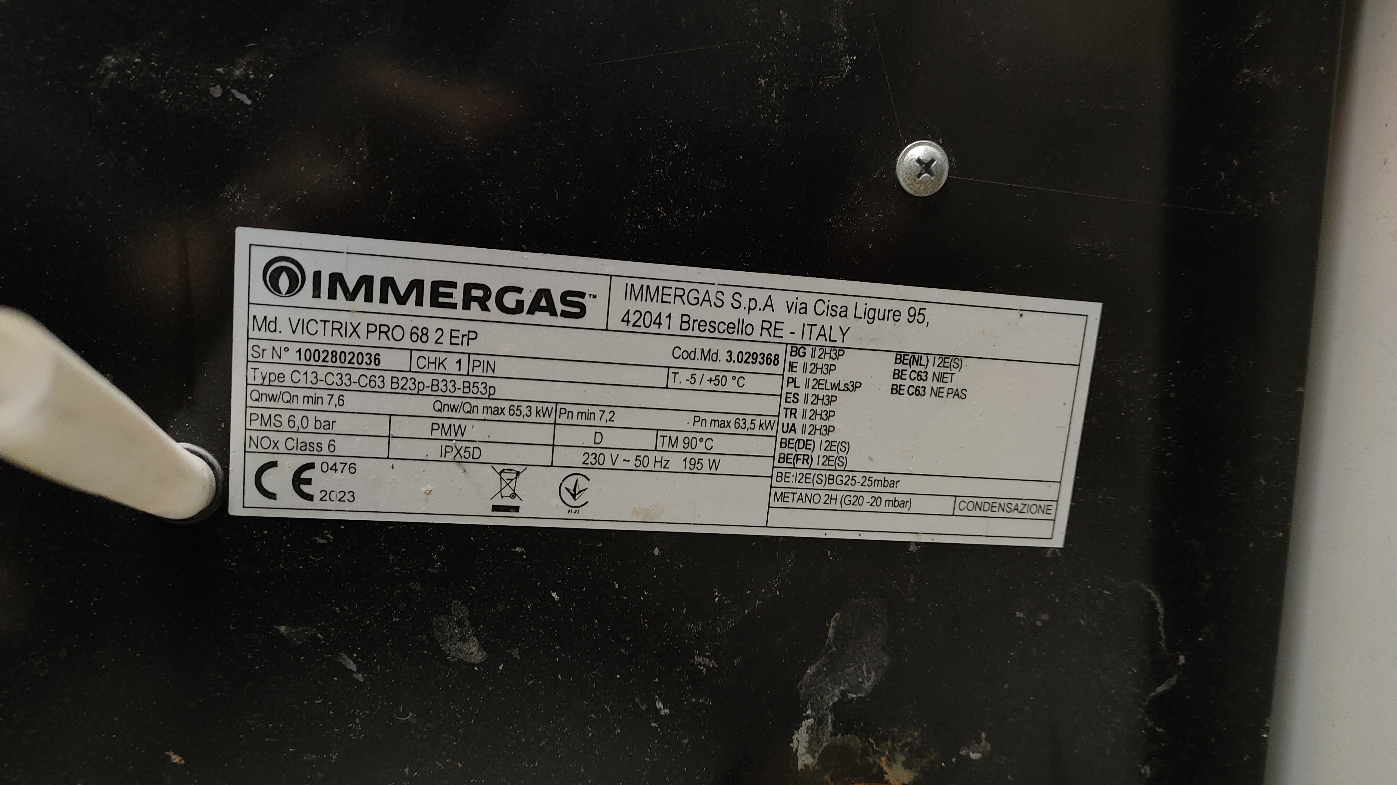 Przetarg publiczny na sprzedaż kotła gazowego IMMERGAS VICTRIX PRO 68 2 ErP (METANO)