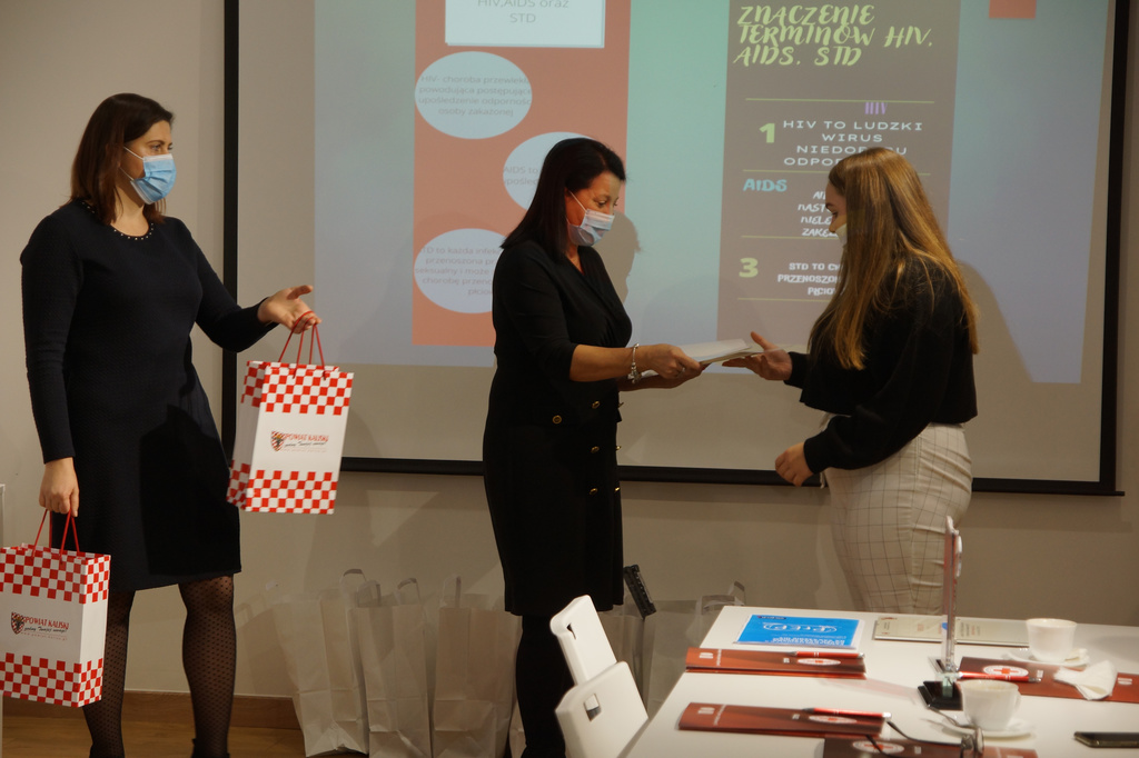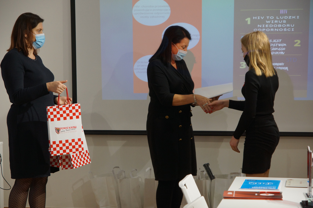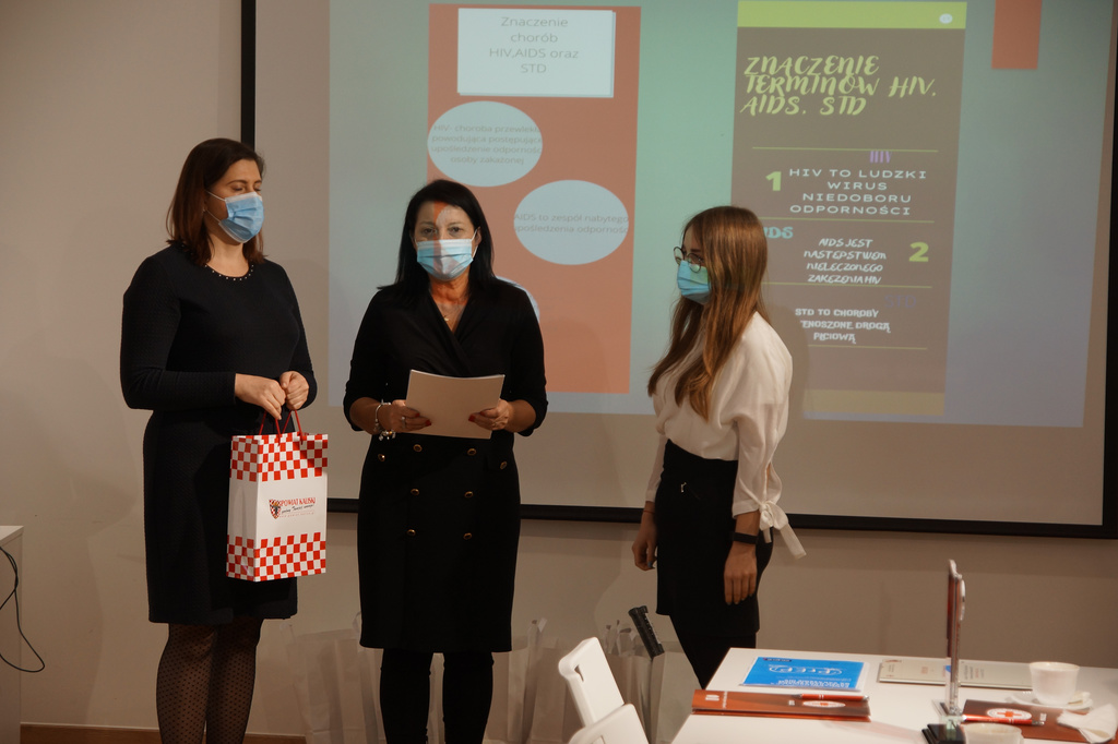 Na zaproszenie pani kierownik Natalii Barańskiej w konferencji uczestniczyli z PSSE w Kaliszu Elżbieta Wojtyła Kierownik Sekcji OZ i PZ oraz Agnieszka Stępniak a także Janusz Sibiński Zastępca Naczelnika Wydziału Spraw Społecznych i Mieszkaniowych UM Kalisza. Elżbieta Wojtyła Kierownik Sekcji OZ i PZ przedstawiła prezentację pt. „Jak rozmawiać z młodzieżą o HIV i AIDS? „. Powiedziała, że ,mogłoby się wydawać, iż w czasie pandemii, w sytuacji, gdy przez większą część roku obowiązywały obostrzenia, lockdown, a kontakty między ludźmi zostały ograniczone do minimum, akurat problem HIV i AIDS nie będzie nas szczególnie absorbował.