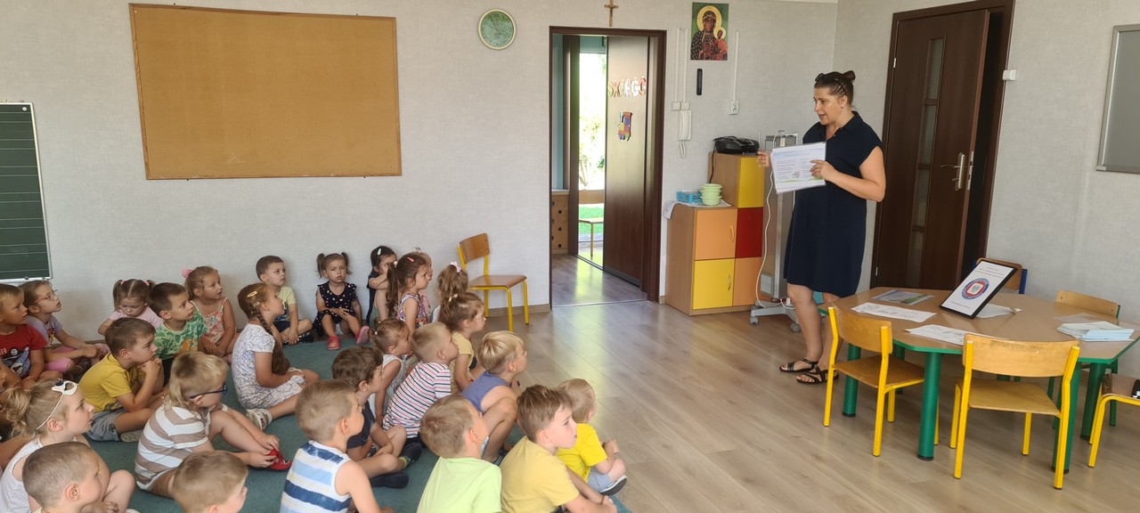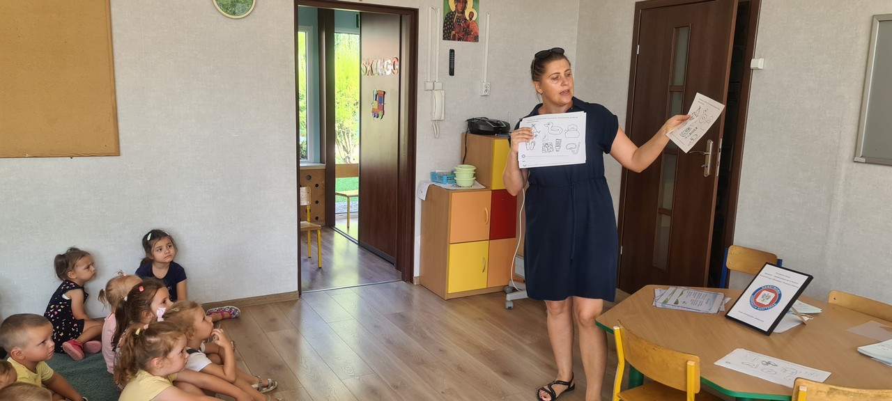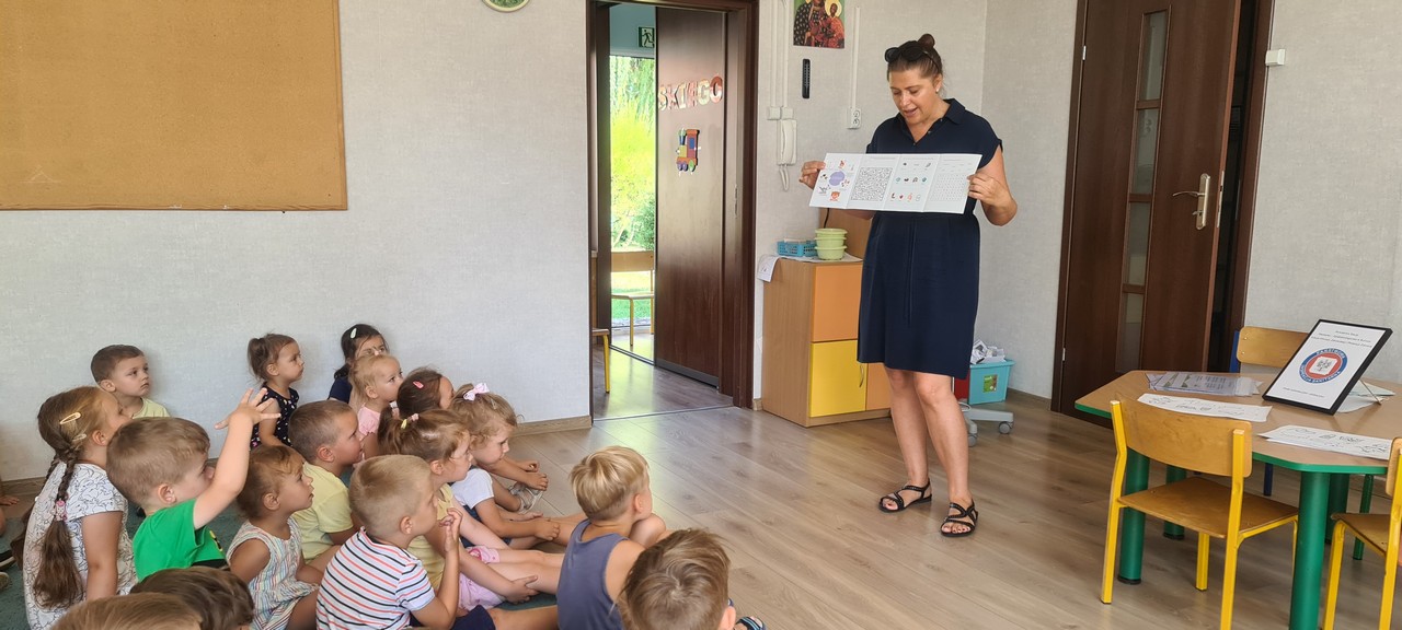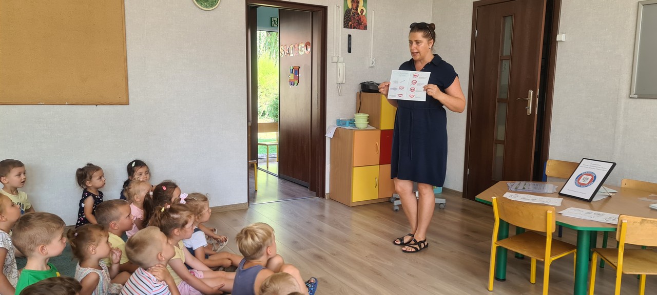 17 sierpnia 2022 roku na terenie Niepublicznego Przedszkola „Pluszaki” pracownik Powiatowej Stacji Sanitarno – Epidemiologicznej w Kaliszu z Sekcji Oświaty Zdrowotnej i Promocji Zdrowia Agnieszka Stępniak w ramach „Akcji Letniego Wypoczynku” przeprowadziła dla dzieci i opiekunów pogadankę, której tematem były „Zdrowe i bezpieczne wakacje”.