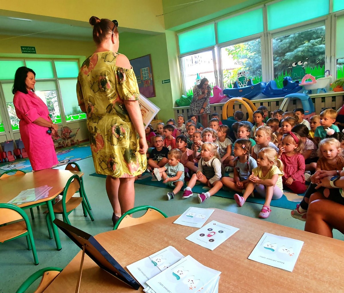 Na zakończenie wszystkie dzieci biorące udział w spotkaniu otrzymały ulotkę „Mam zdrowe zęby!” opracowaną przez Wojewódzką Stację Sanitarno-Epidemiologiczną