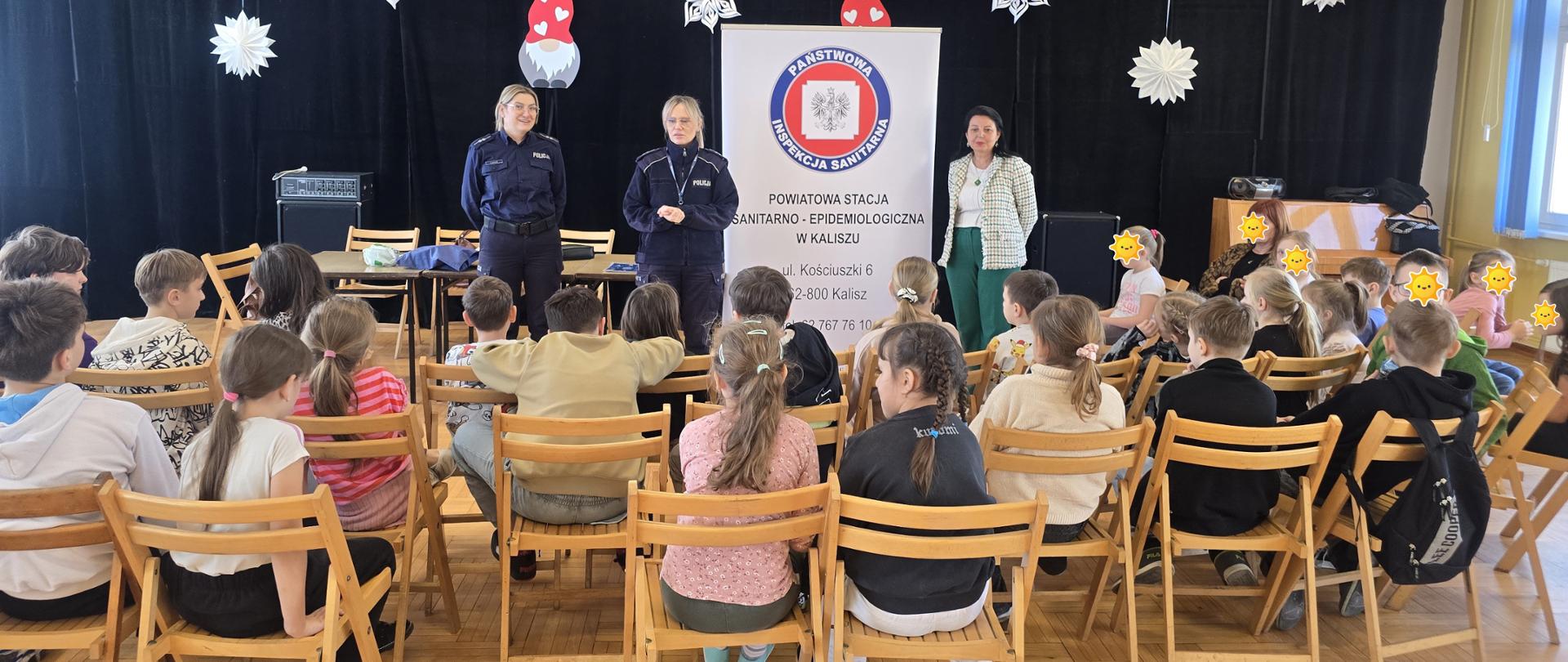 Pracownicy PSSE w Kaliszu omówili tematykę dotyczącą: zdrowego stylu życia (m.in. zapoznanie z talerzem zdrowego żywienia, zachęcenie do codziennej aktywności fizycznej), profilaktyki tytoniowej (szkodliwości palenia papierosów, inhalowania e-papierosów, biernego palenia), szkodliwości napojów energetyzujących oraz higieny osobistej (mycie rąk).-