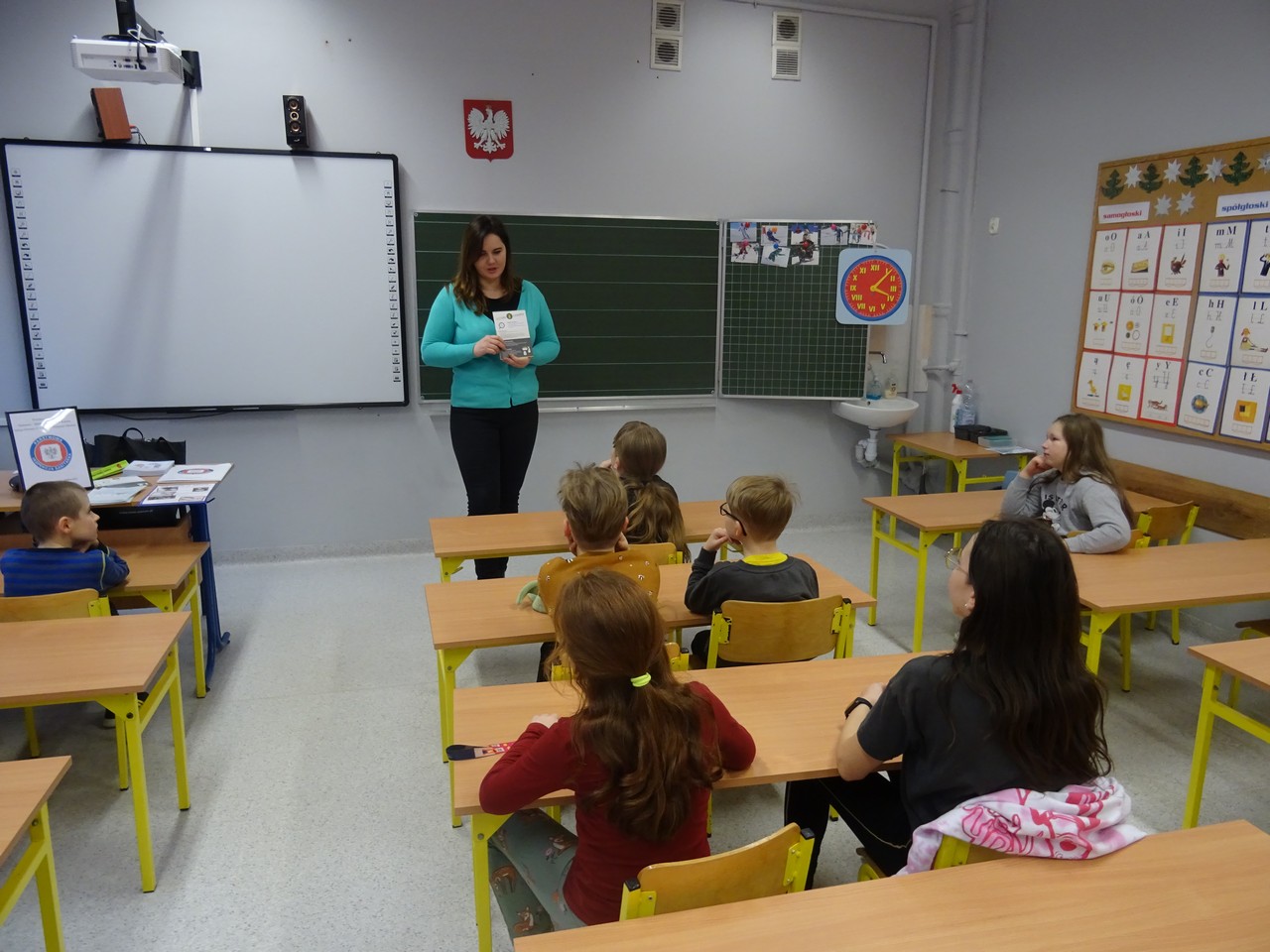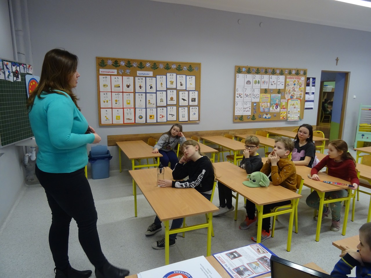 3 lutego 2023 roku pracownicy Sekcji Oświaty Zdrowotnej i Promocji Zdrowia Powiatowej Stacji Sanitarno-Epidemiologicznej w Kaliszu w ramach „Akcji Zimowego Wypoczynku” na terenie Szkoły Podstawowej nr 16 w Kaliszu przeprowadzili działania promujące zdrowy styl życia.