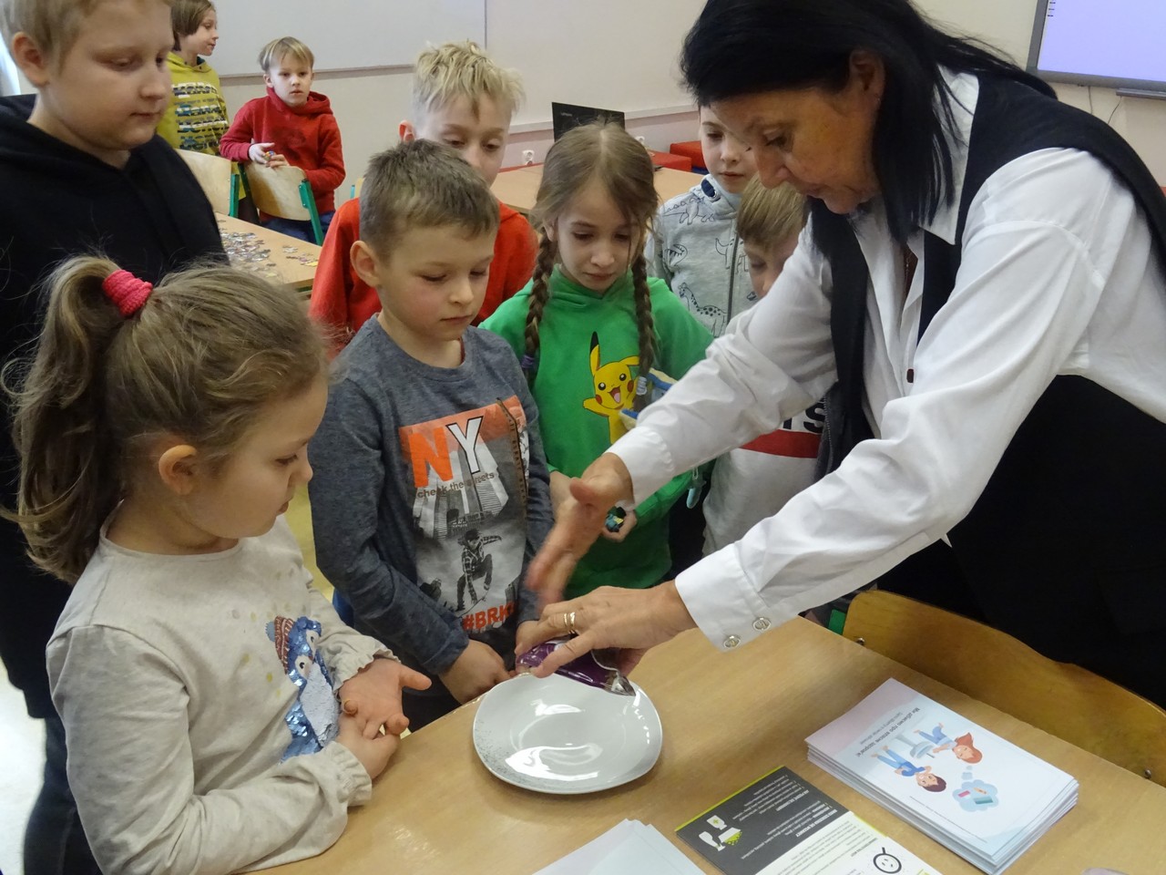 Dodatkowymi działaniami były pokaz i instruktaż prawidłowego mycia zębów, zajęcia warsztatowe w ramach profilaktyki grypy oraz quiz wiedzy, w którym każdy uczestnik otrzymał gadżety przekazane z Wojewódzkiej Stacji Sanitarno-Epidemiologicznej w Poznaniu.