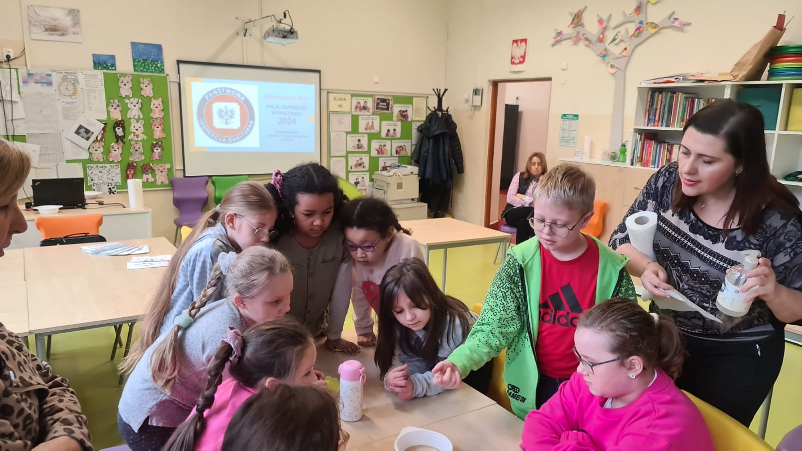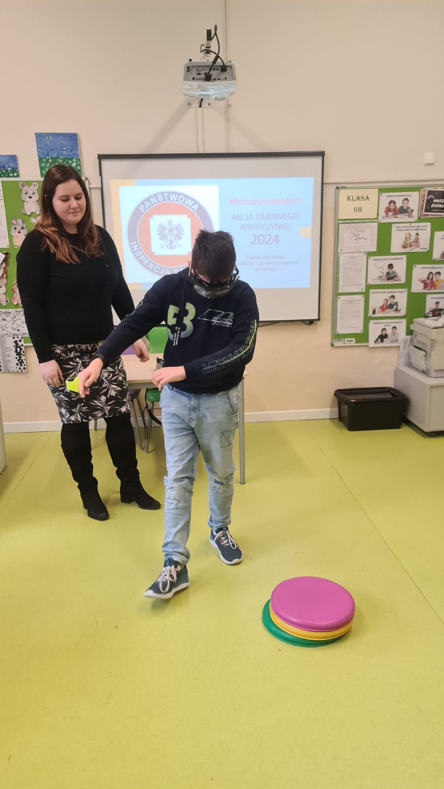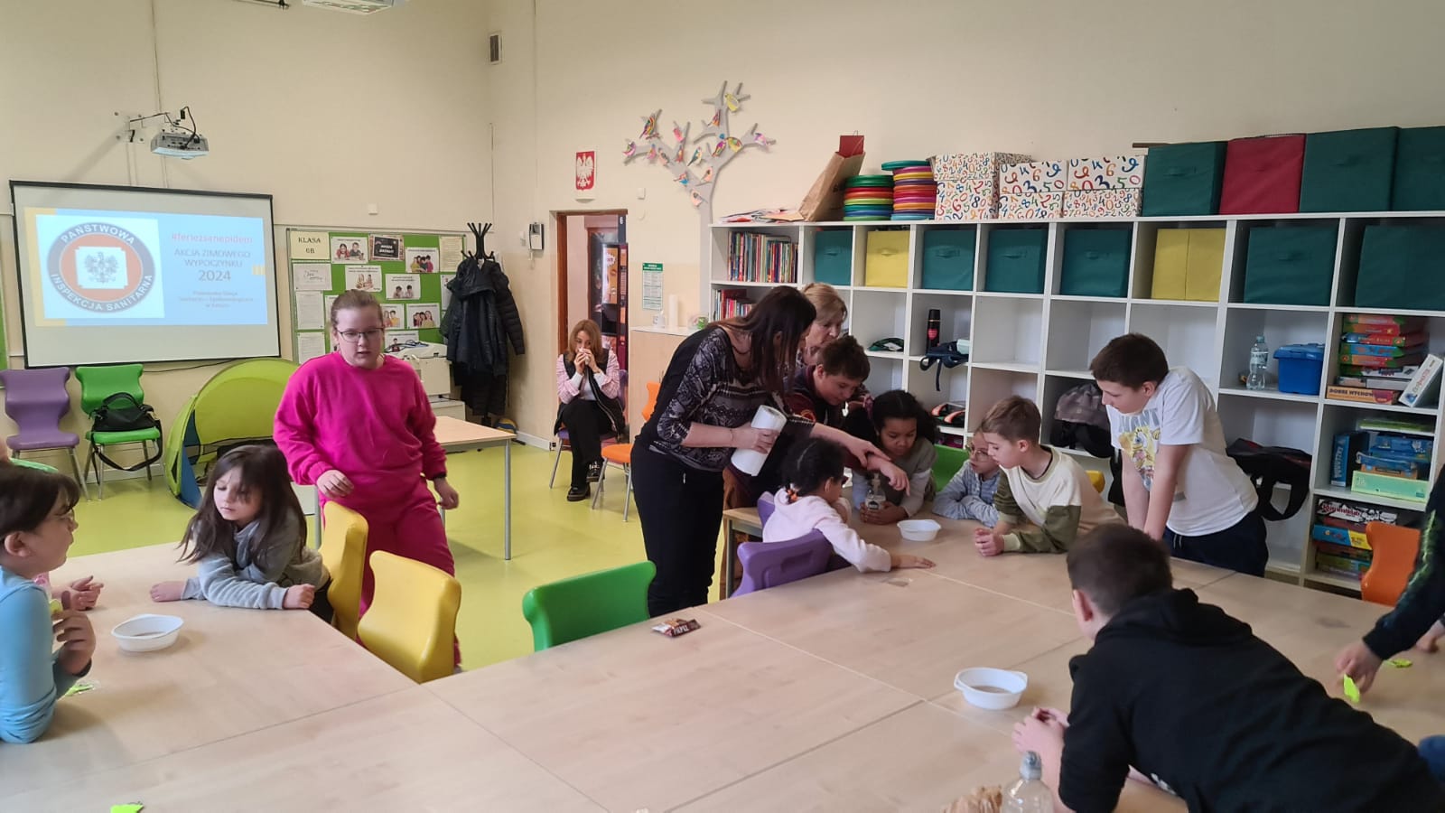 Na terenie Szkoły Podstawowej nr 1 w Kaliszu, 15 lutego 2024 roku pracownicy Powiatowej Stacji Sanitarno-Epidemiologicznej w Kaliszu z Sekcji Oświaty Zdrowotnej