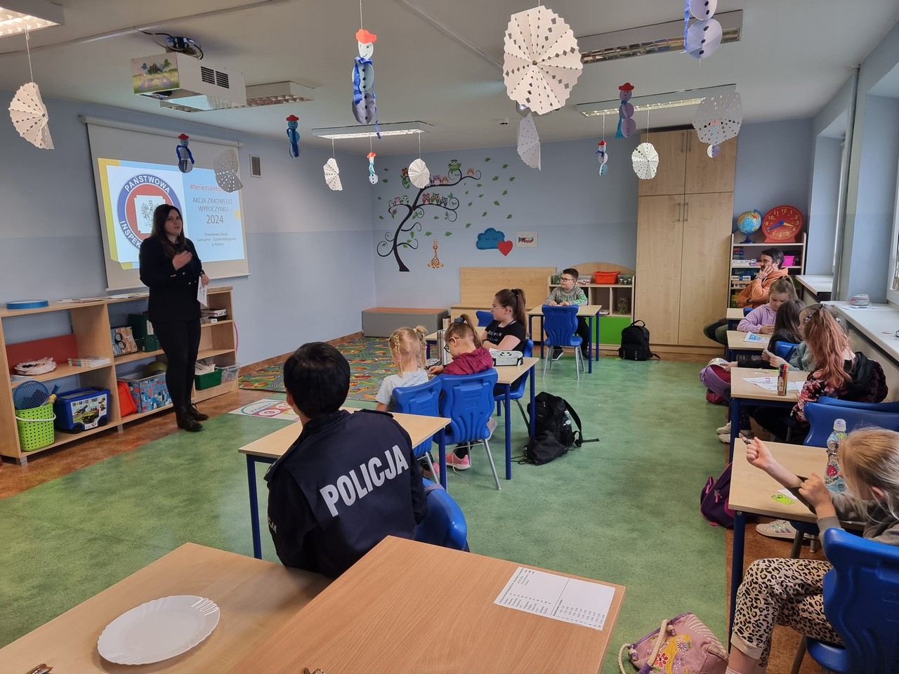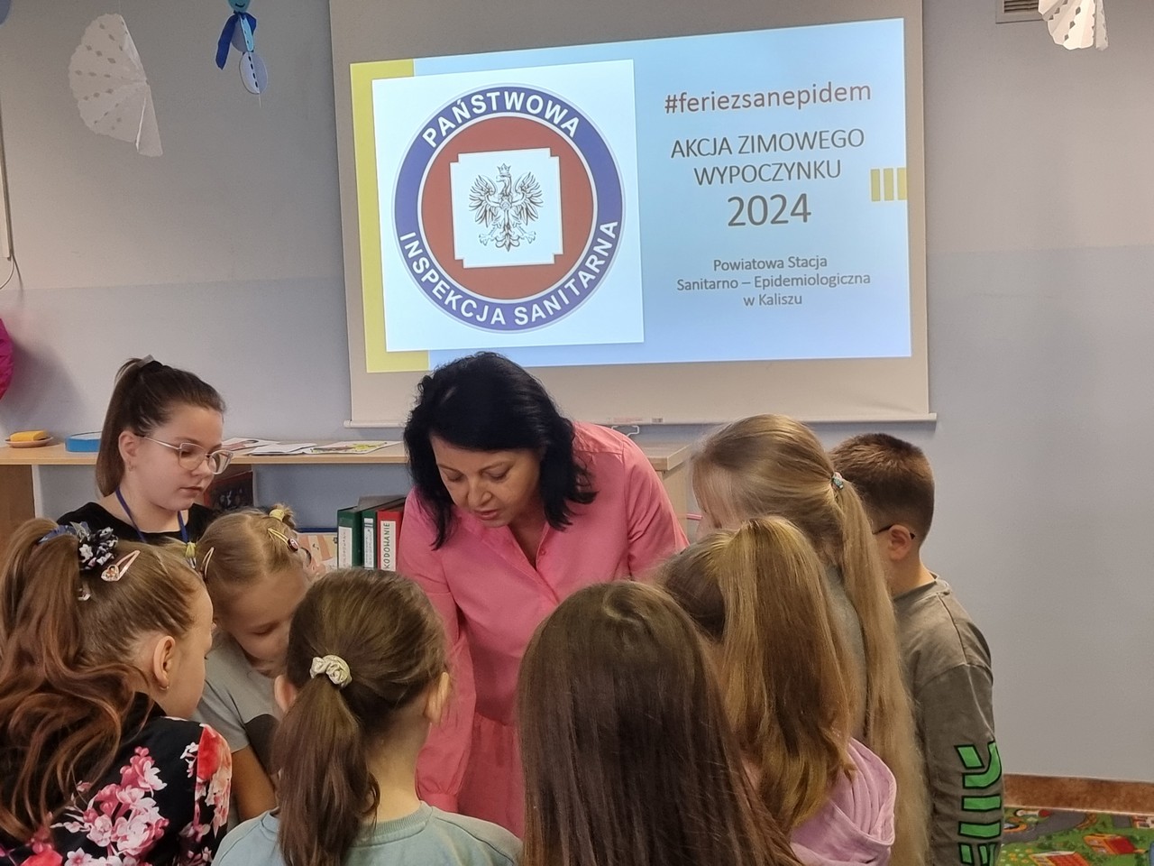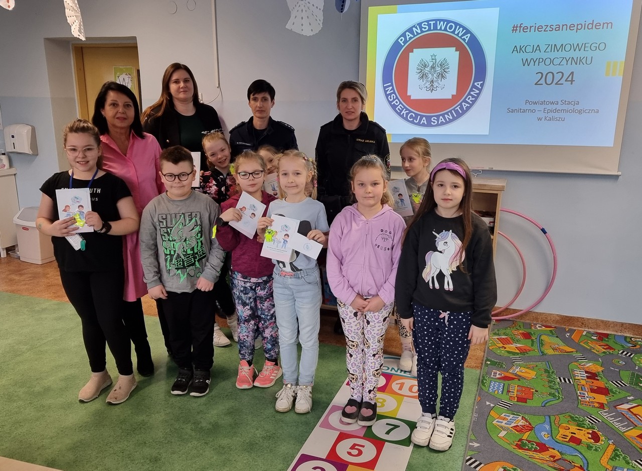 W dniu 13 lutego 2024 r. pracownicy Sekcji Oświaty Zdrowotnej i Promocji Zdrowia Powiatowej Stacji Sanitarno - Epidemiologicznej w Kaliszu: kierownik Elżbieta Wojtyła oraz Joanna Jaroma – Woźniak, we współpracy z funkcjonariuszami Komendy Miejskiej Policji oraz Straży Miejskiej, przeprowadzili działanie w Szkole Podstawowej nr 4 w Kaliszu, wśród dzieci korzystających z „Wakacji w mieście”.