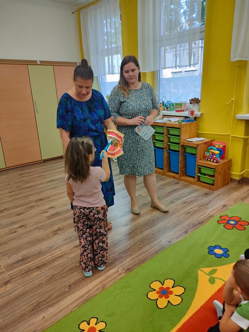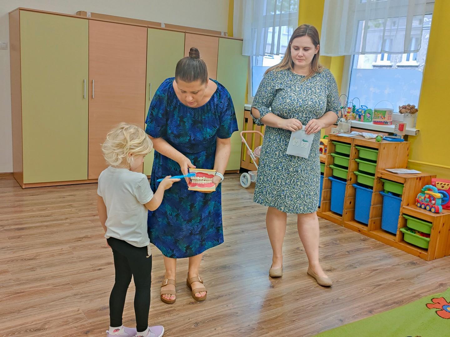 Z wykorzystaniem dużego modelu szczęki przeprowadzono instruktaż prawidłowego szczotkowania jamy ustnej. W ramach podsumowania ułożono puzzle, dotyczące bezpiecznego wypoczynku nad wodą.