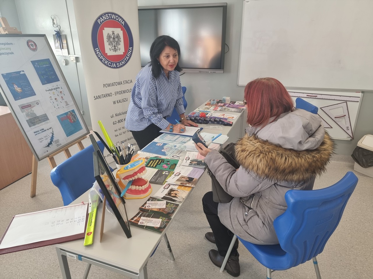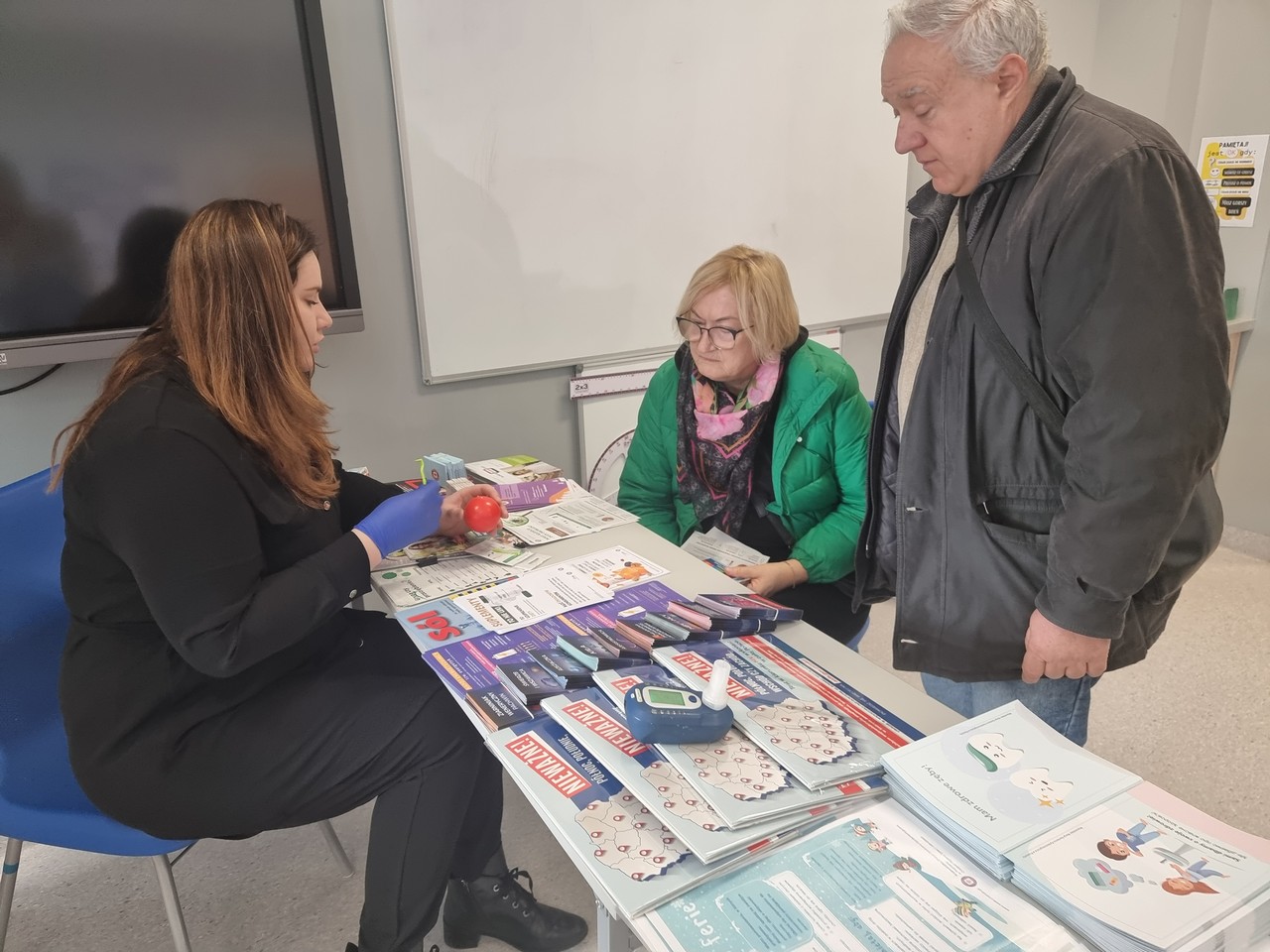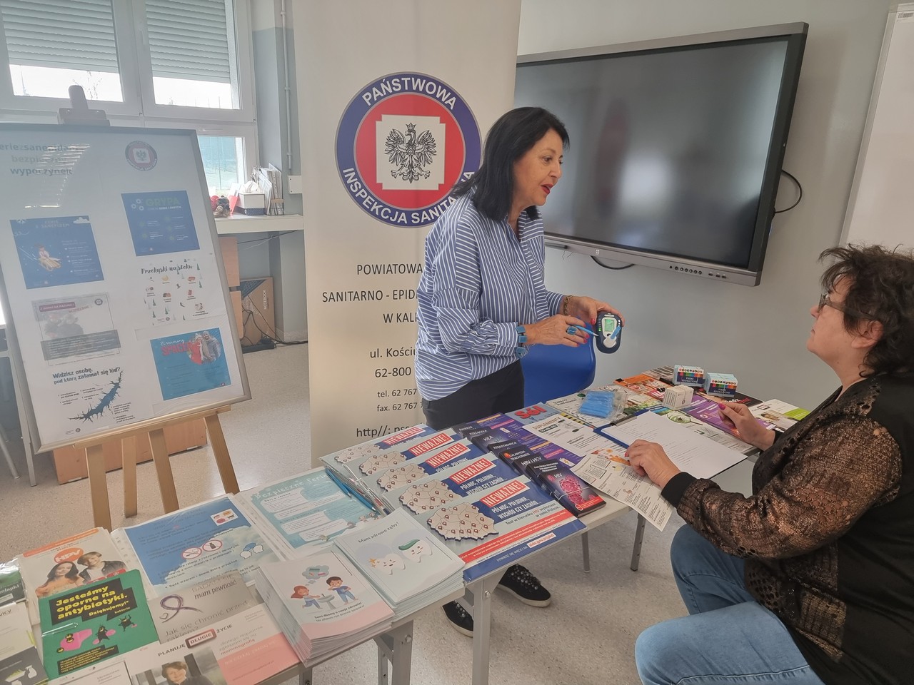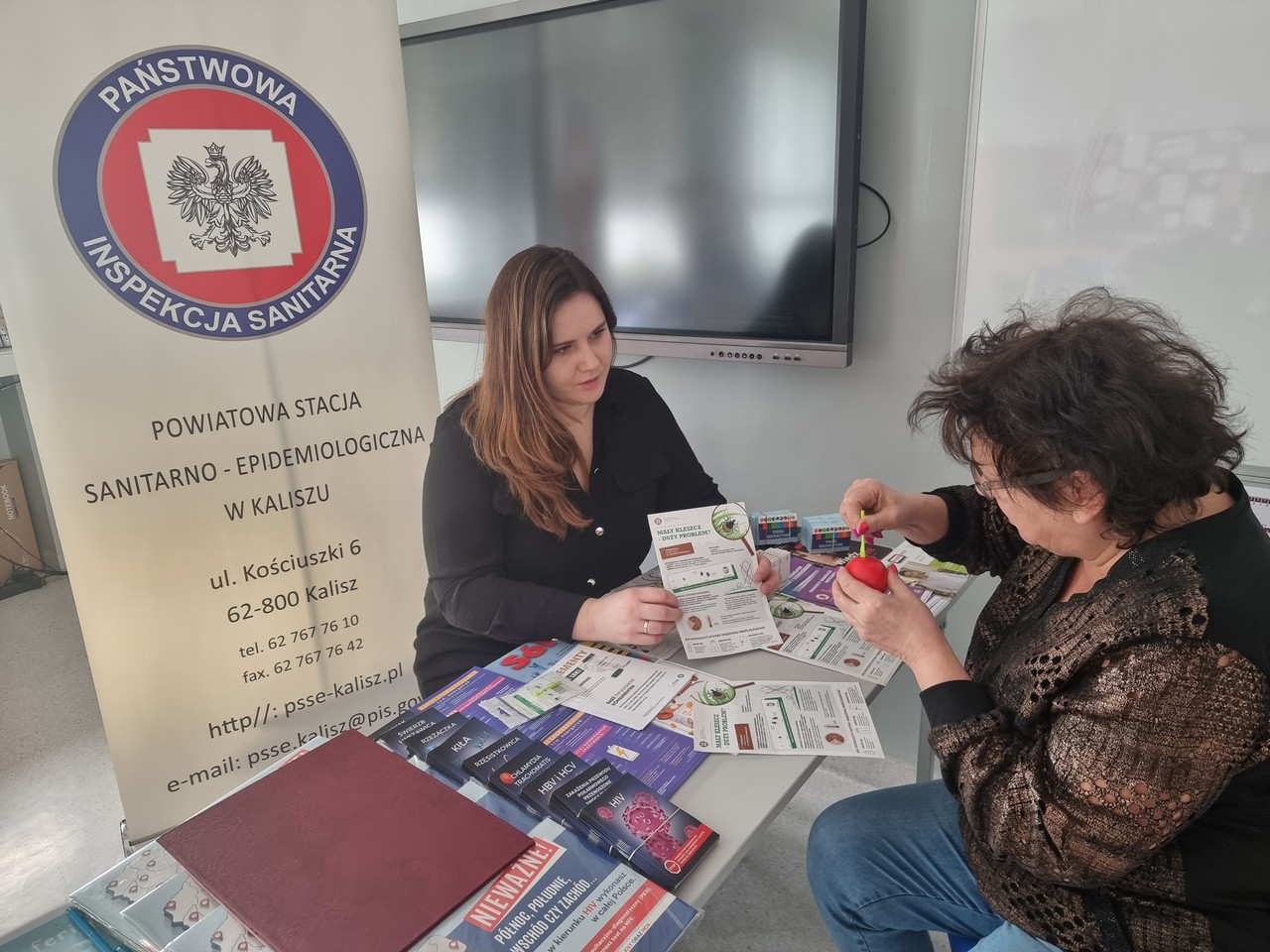 Zainteresowani mogli skorzystać również z instruktażu jak usunąć kleszcza, mogli porozmawiać na inne prozdrowotne tematy jak: energetyki, zdrowa żywność, zakażenia przenoszone drogą płciową….. i zabrać przygotowane ulotki.