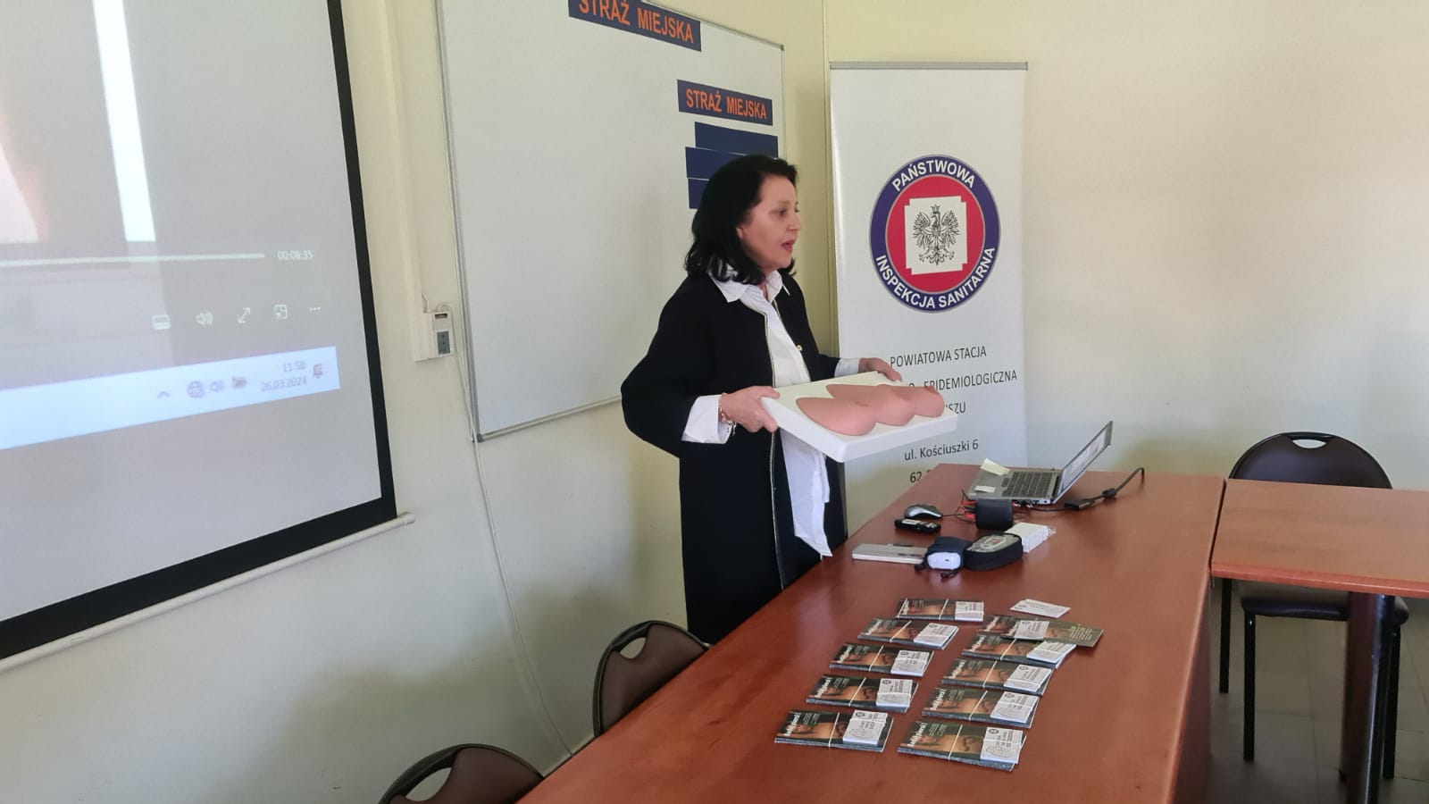 Dodatkowym działaniem było wyświetlenie filmu instruktażowego oraz warsztaty instruktażu samobadania piersi na fantomach.
