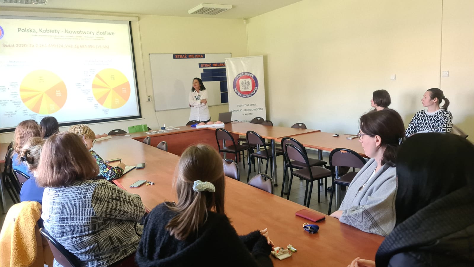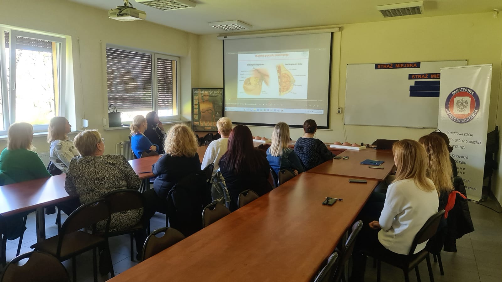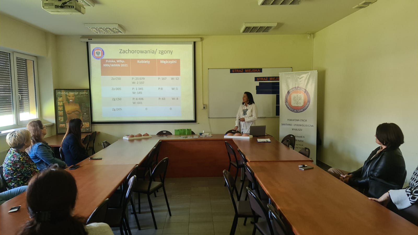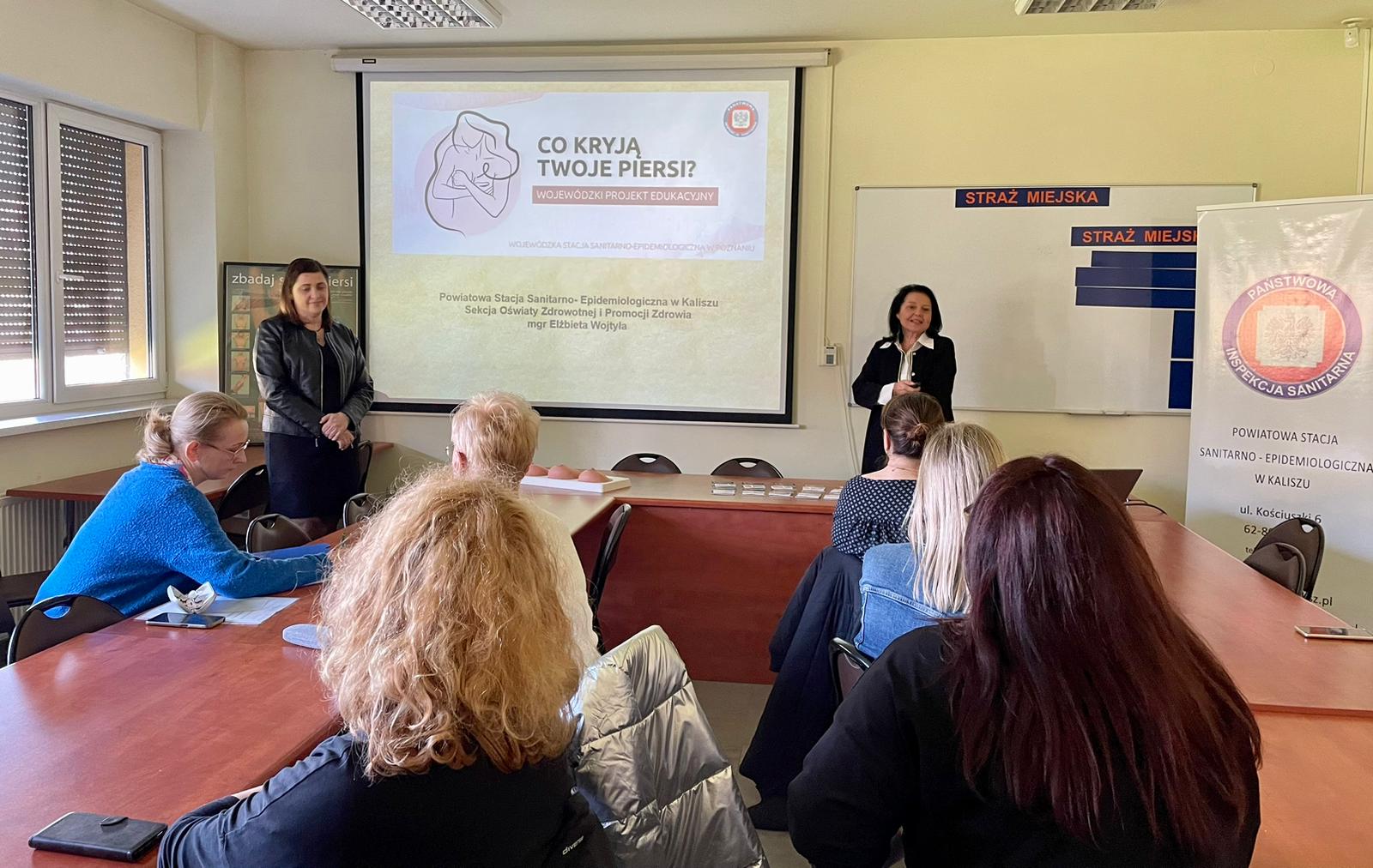 26 marca 2024 r., na zaproszenie Wiceprezydenta Miasta Kalisza Mateusza Podsadnego pracownicy Powiatowej Stacji Sanitarno-Epidemiologicznej w Kaliszu: Elżbieta Wojtyła oraz Agnieszka Stępniak, przeprowadziły 2 szkolenia oraz zajęcia warsztatowe dla pracowników Urzędu Miasta, w ramach wojewódzkiego projektu edukacyjnego „Co kryją Twoje piersi?”.