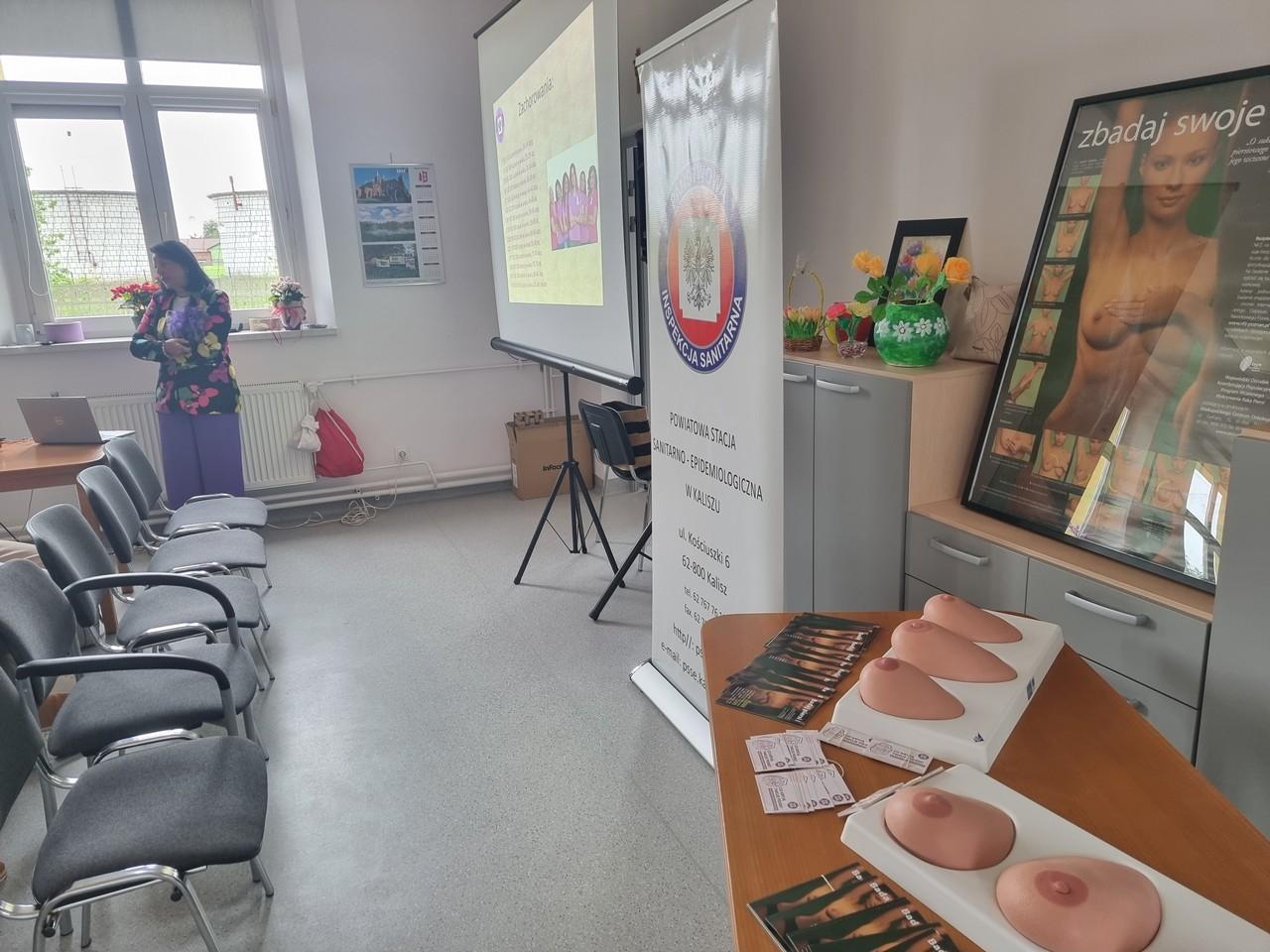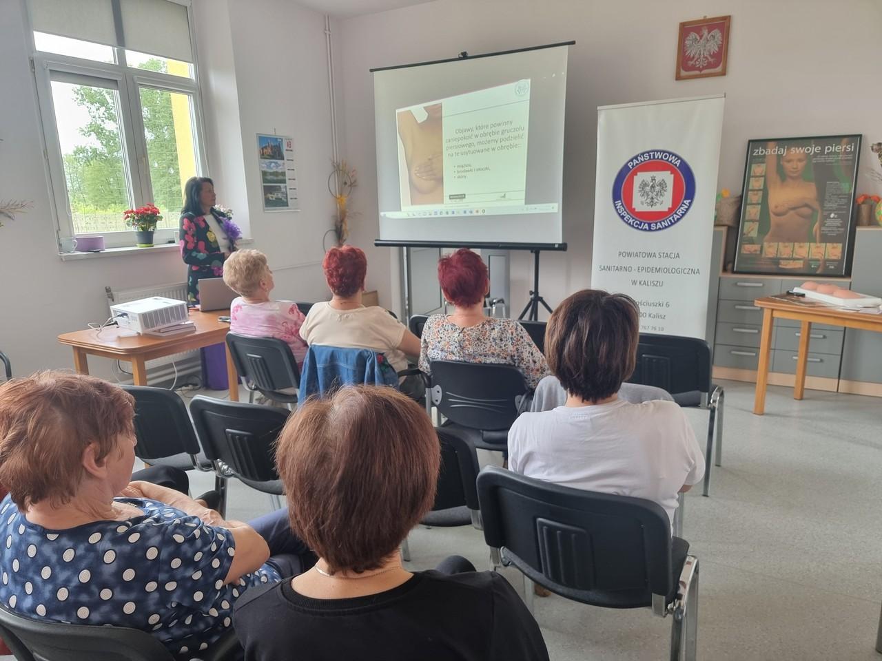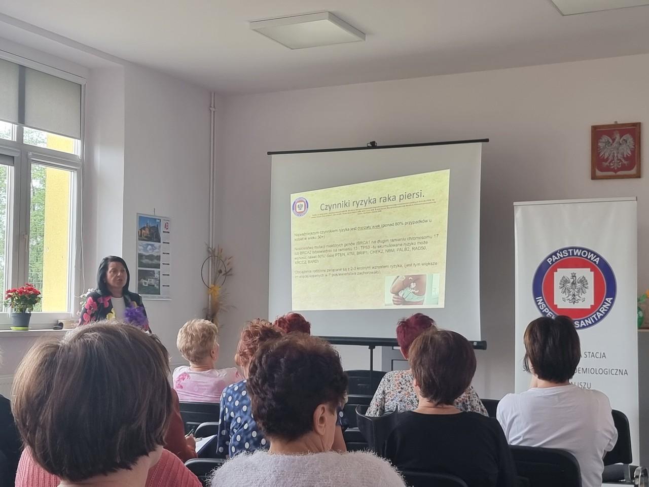 I tak w dniu 7 maja 2024 r., w ramach spotkania omówiono czynniki ryzyka zachorowania na raka piersi, zalecane działania profilaktyczne oraz statystykę zachorowań.
