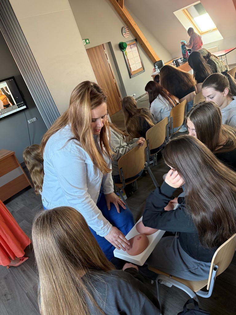 Wyświetlono film instruktażowy, a następnie przeprowadziliśmy część warsztatową, czyli naukę samobadania piersi przy pomocy fantomów.