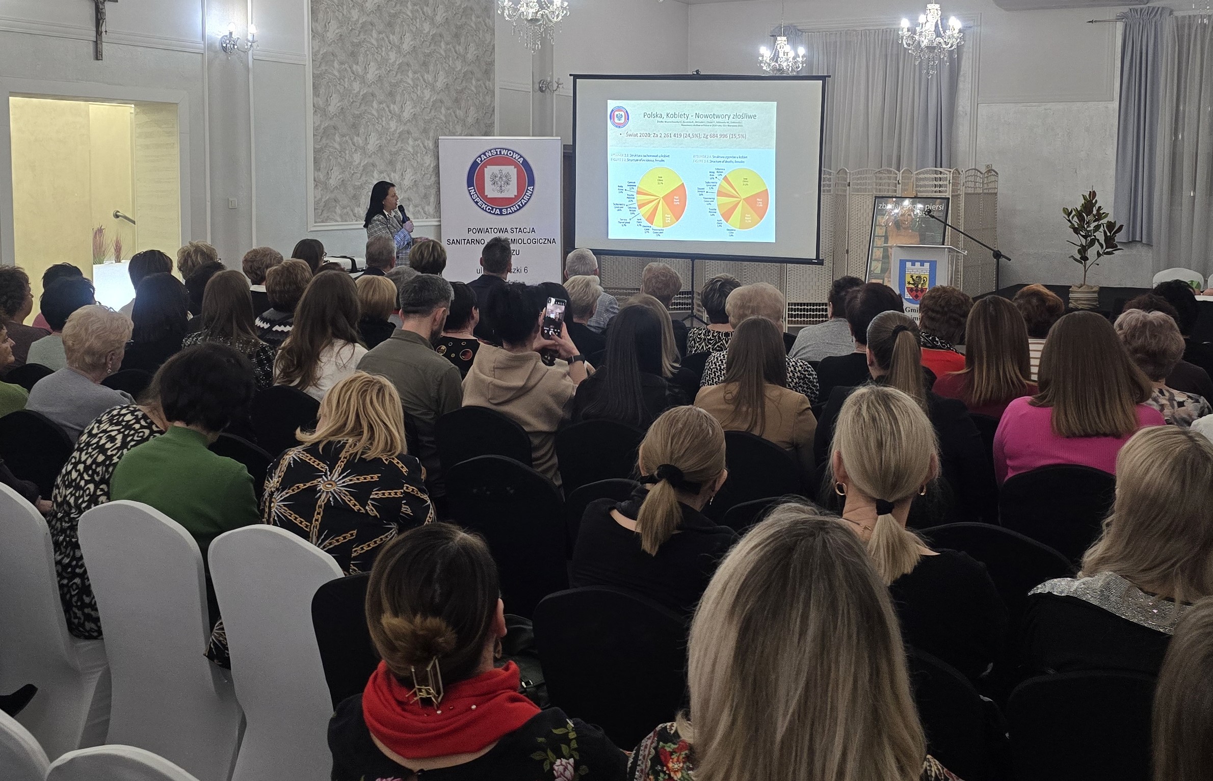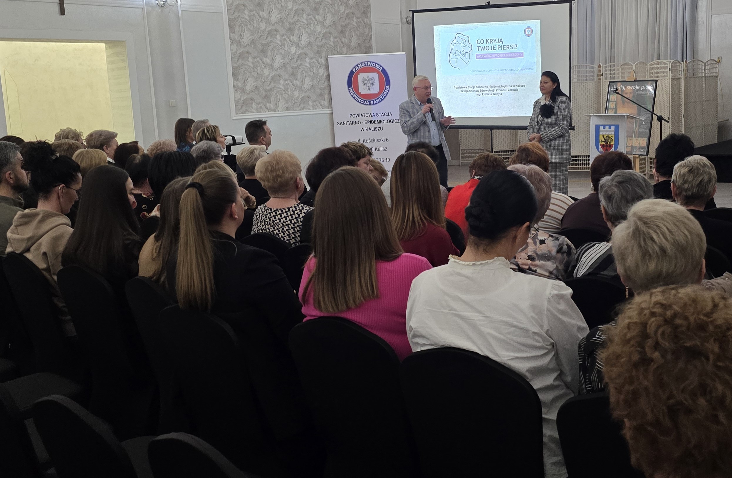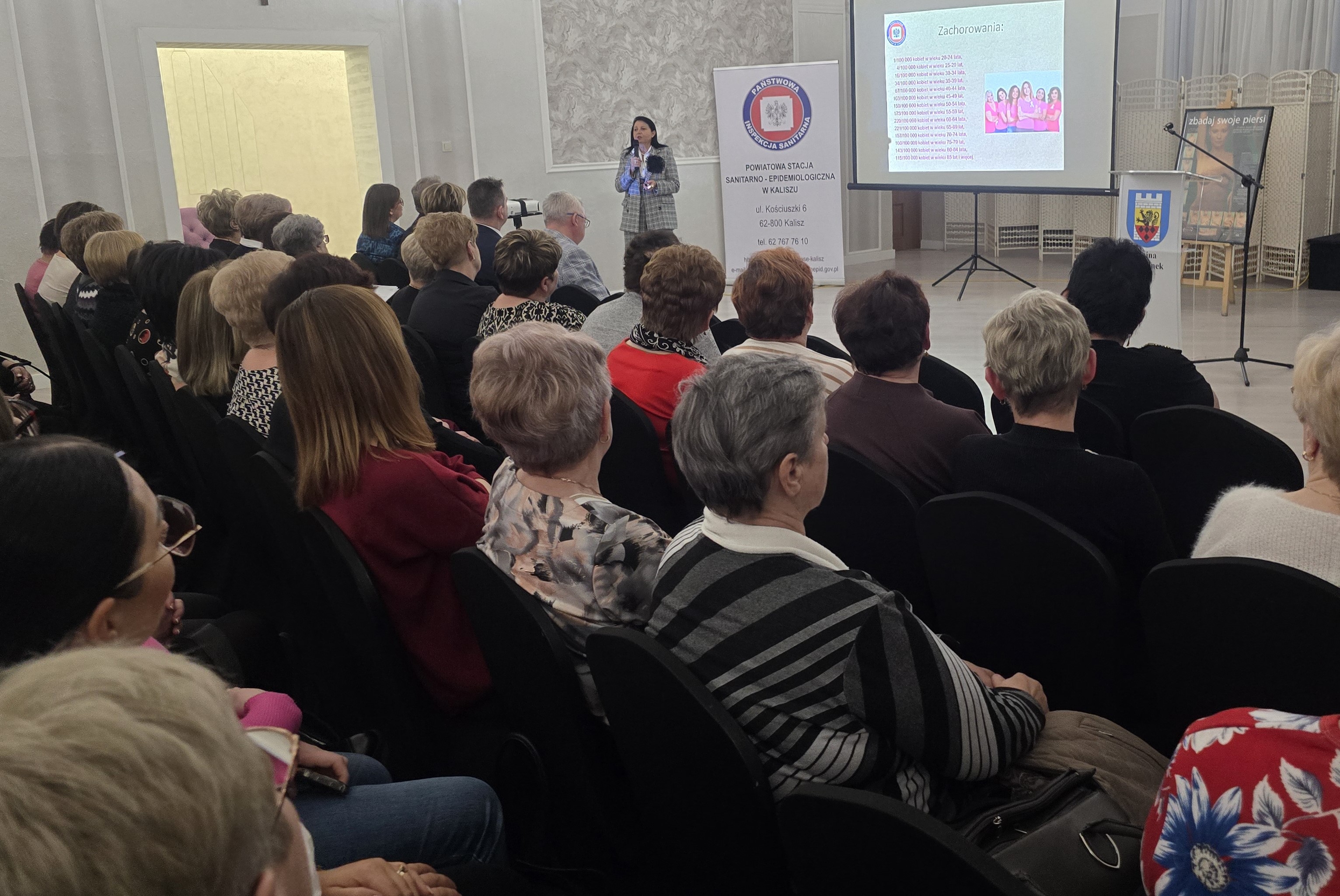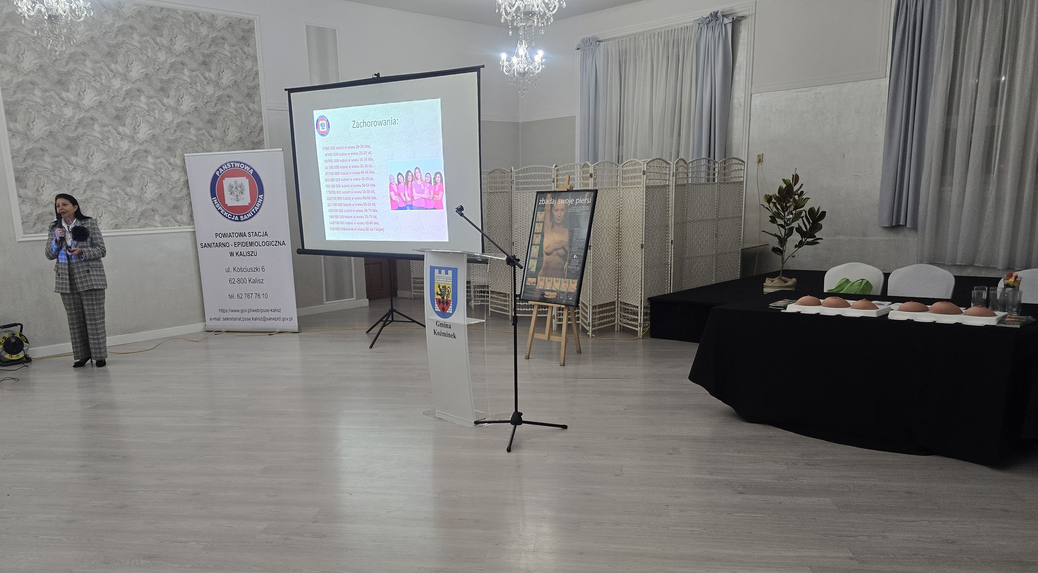 Szkolenie otworzył Dyrektor PSSE w Kaliszu Marek Stodolny a szkolenie poprowadziła Kierownik Sekcji OZ i PZ Elżbieta Wojtyła, przedstawiła prezentację na temat profilaktyki raka piersi (prewencji oraz badań przesiewowych).
