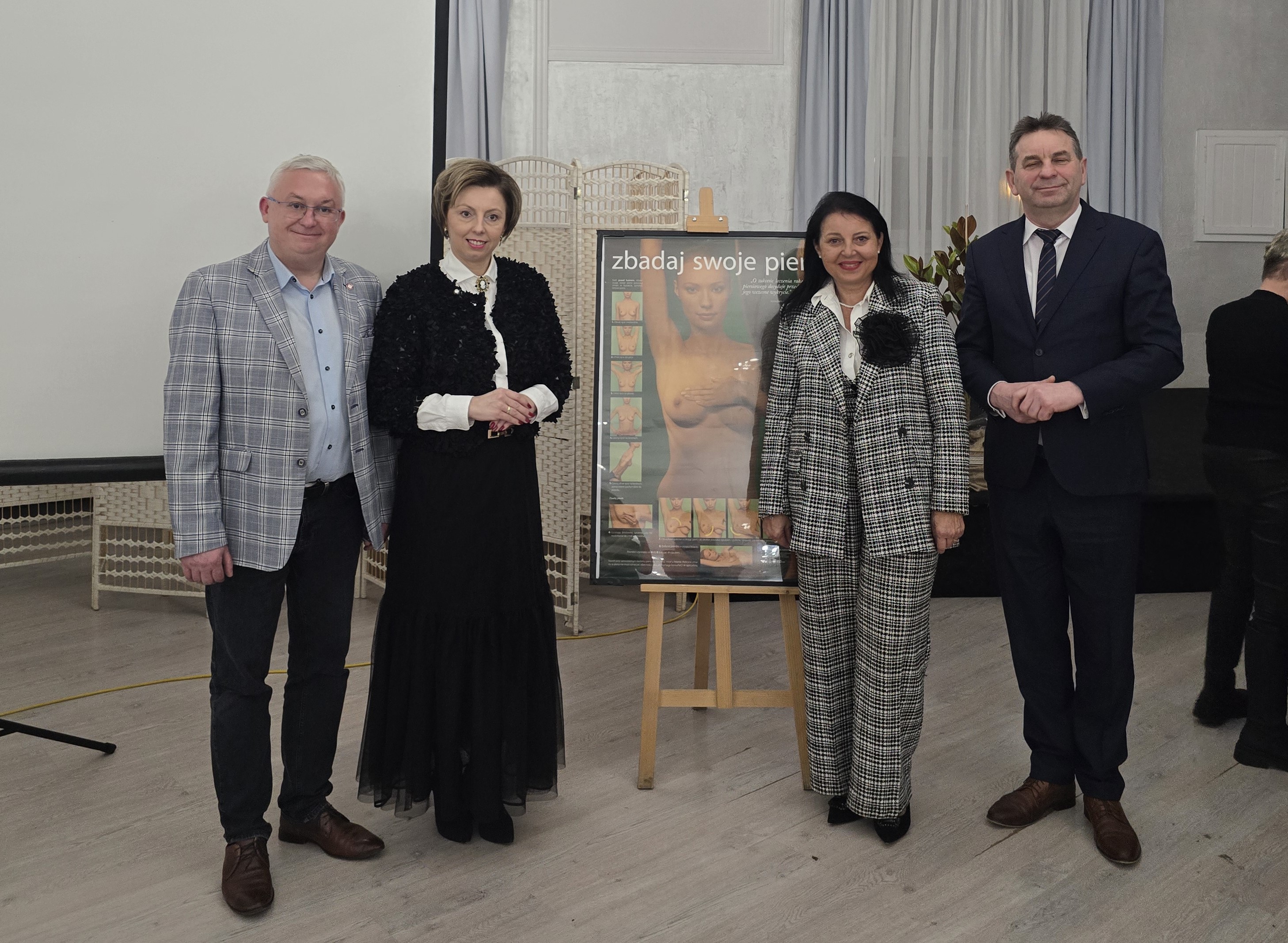 Poinformowała o dostępnych obecnie sposobach profilaktyki (samobadanie, usg, mammografia. Pracownicy Sekcji OZ i PZ prowadzący szkolenie Elżbieta Wojtyła, oraz Joanna Jaroma – Woźniak przedstawili instruktaż prawidłowego samobadania piersi.