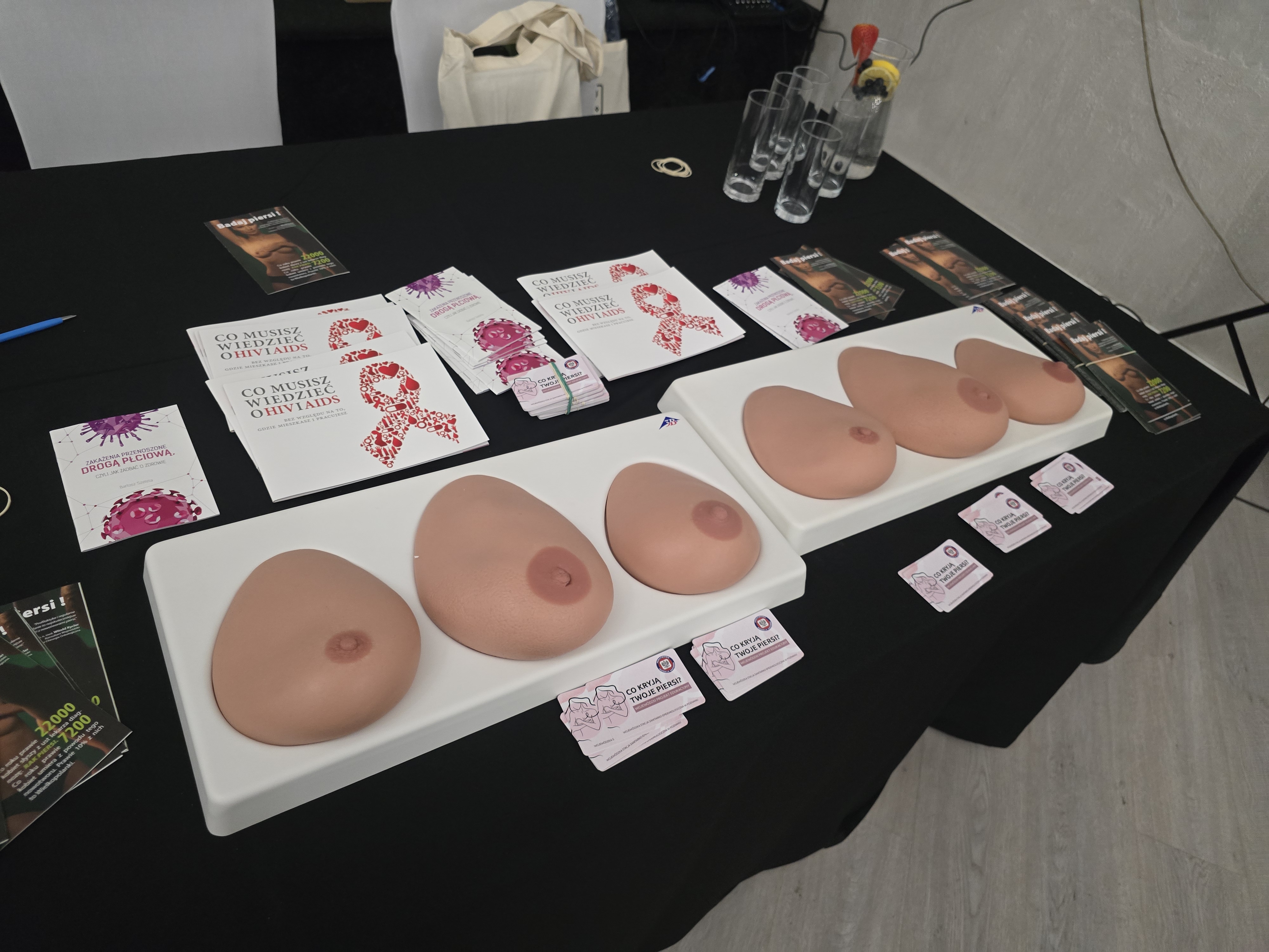 Poinformowali również obecnych o miejscach w których można wykonać bezpłatną mammografię. Na zakończenie każdy z uczestników szkolenia mógł sam spróbować na fantomie wyszukać poprzez samobadanie zmiany w piersiach fantomu.