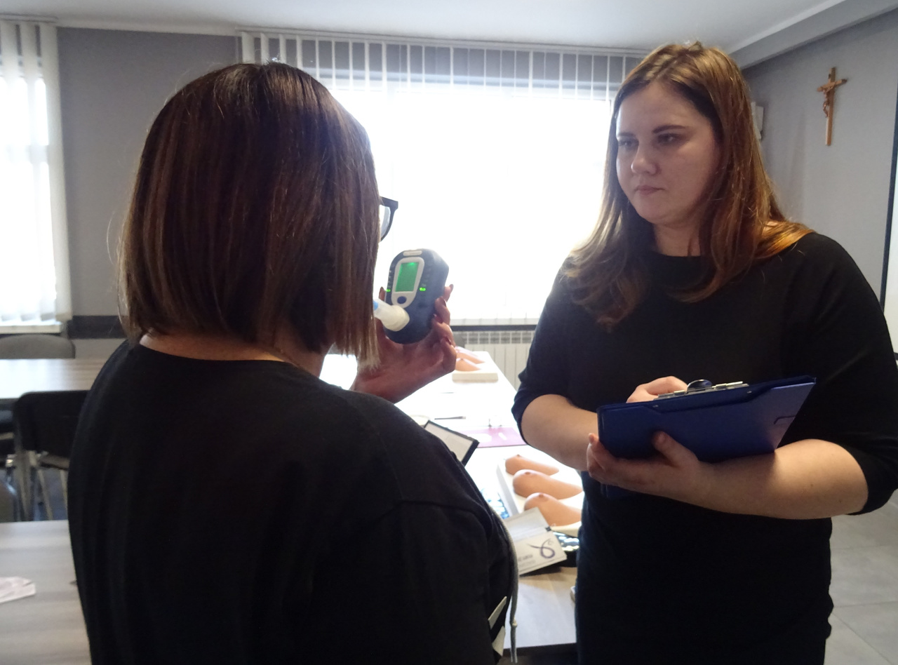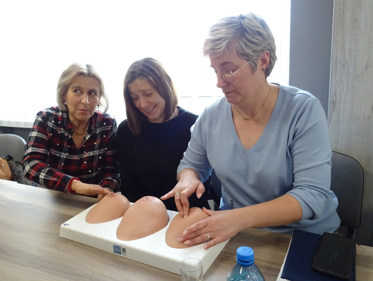 Na zakończenie każdy z uczestników szkolenia mógł sam spróbować na fantomie wyszukać poprzez samobadanie zmiany w piersiach fantomu.