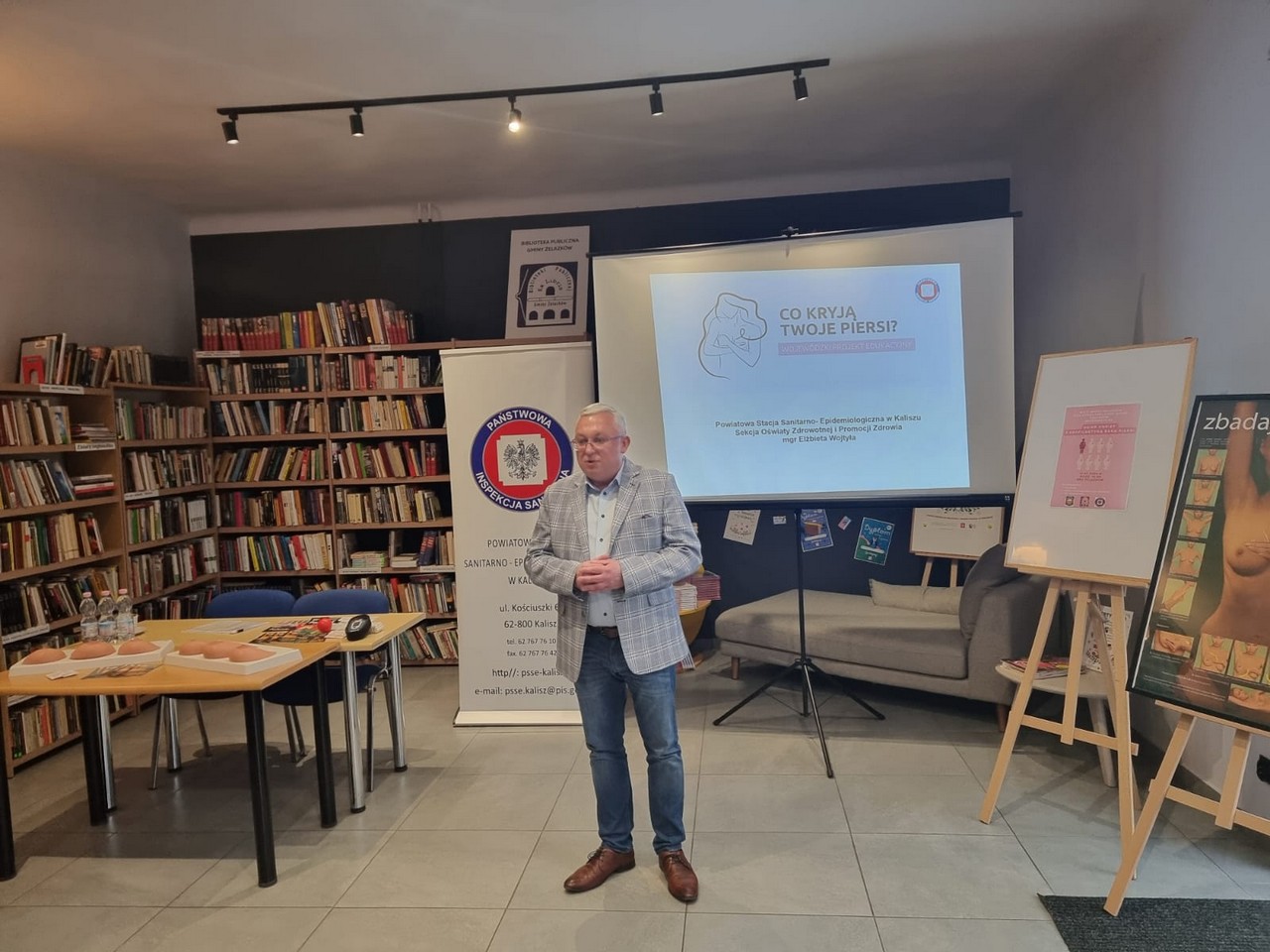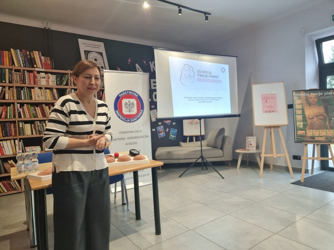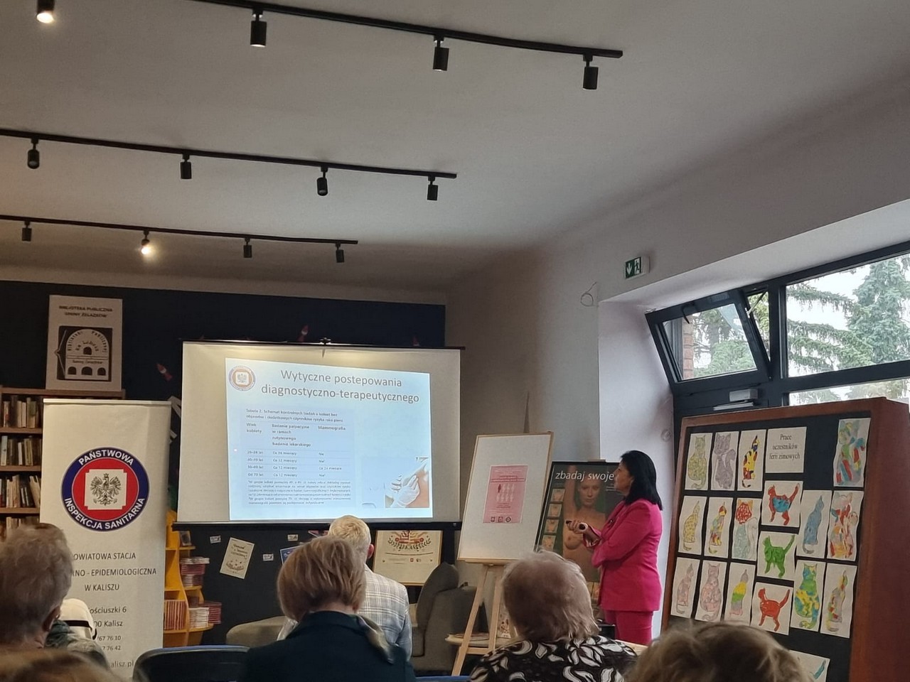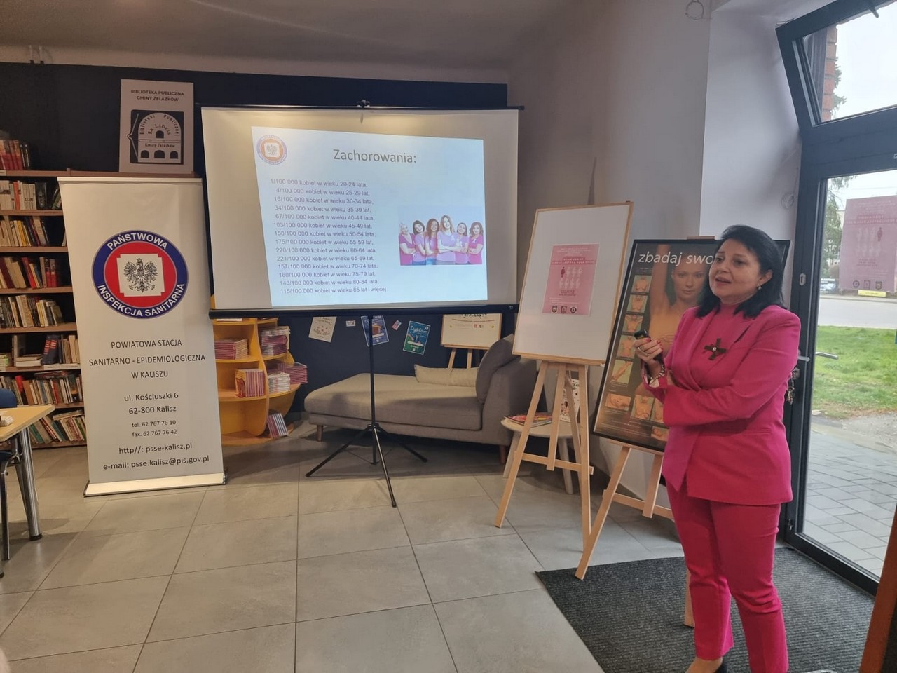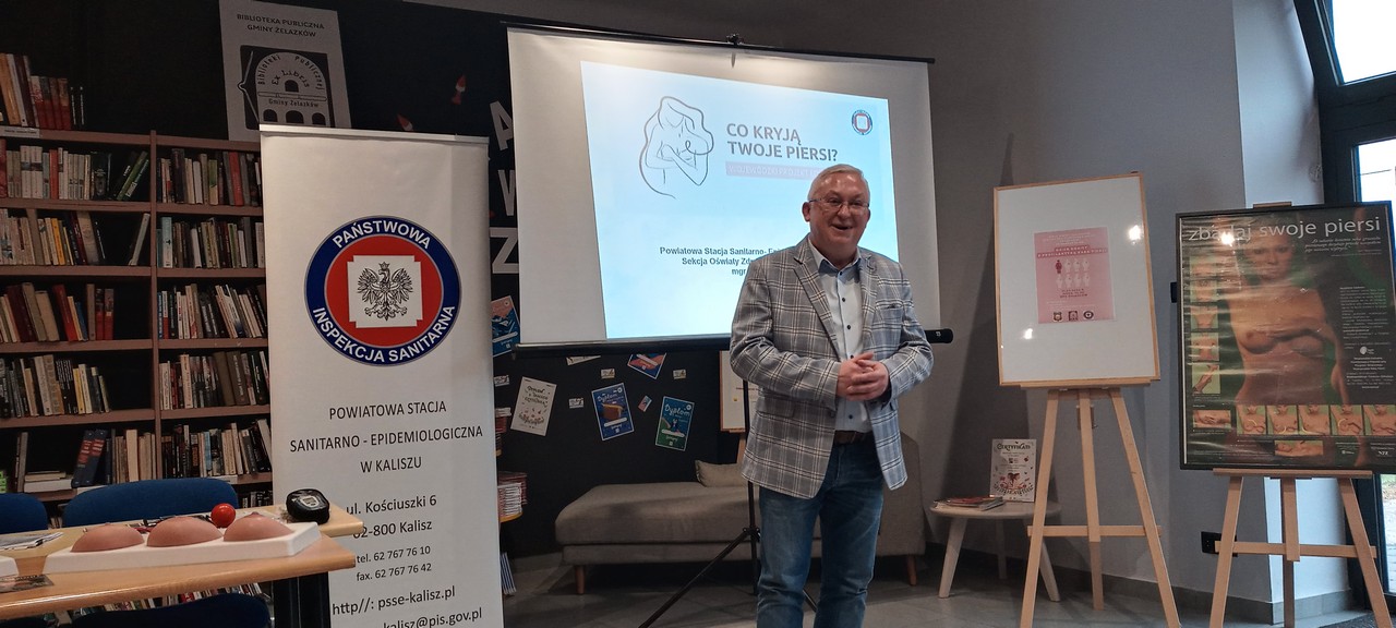 11 marca 2024 r. na zaproszenie dyrektor Biblioteki Publicznej Gminy Żelazków Emilii Gwóźdź oraz Radnej Powiatu Kaliskiego Alicji Łuczak, pracownicy Powiatowej Stacji Sanitarno-Epidemiologicznej w Kaliszu, przeprowadzili szkolenie w ramach wojewódzkiego projektu edukacyjnego „Co kryją Twoje piersi?”.