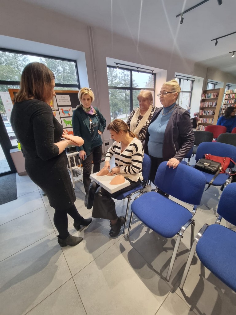 Każda z uczestniczek szkolenia skorzystała z fantomu oraz otrzymała materiały edukacyjne: broszurę oraz kalendarzyk opracowany przez Wojewódzką Stację Sanitarno-Epidemiologiczną w Poznaniu.