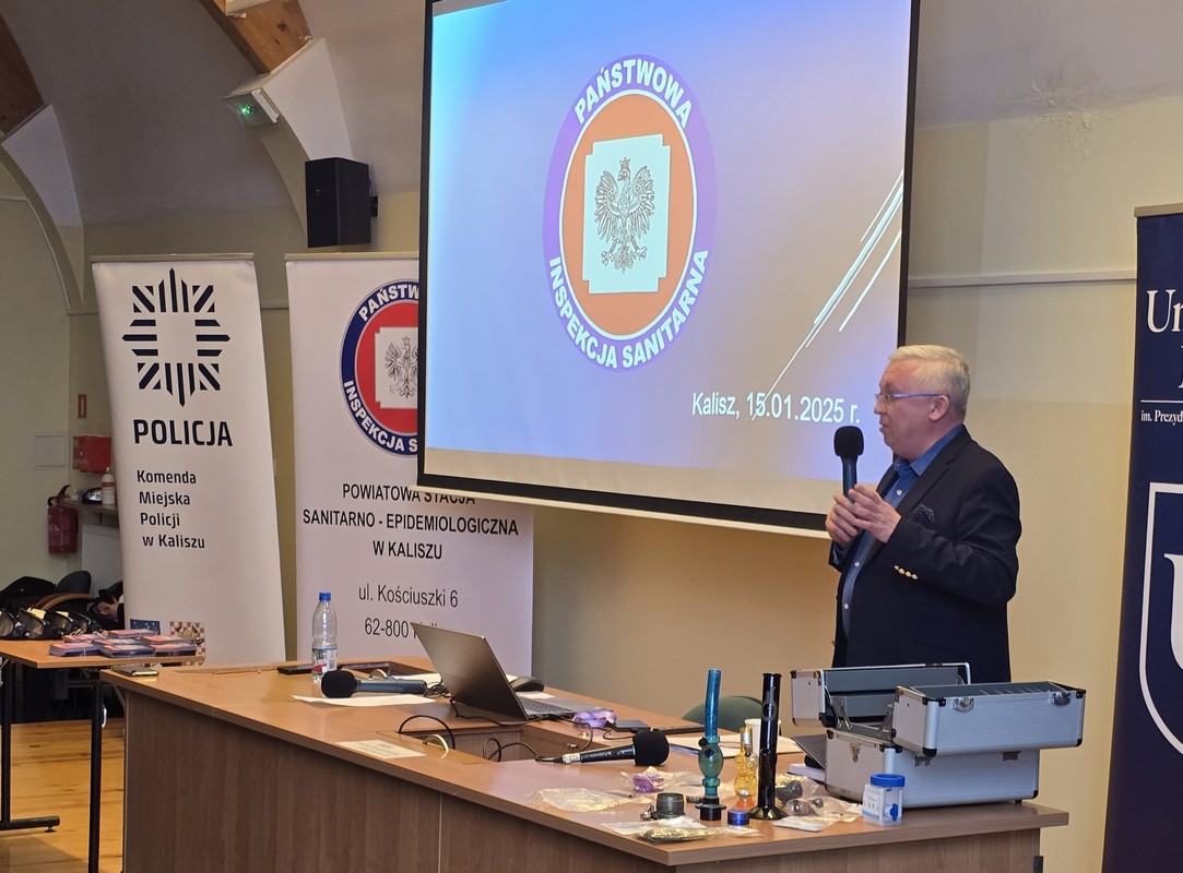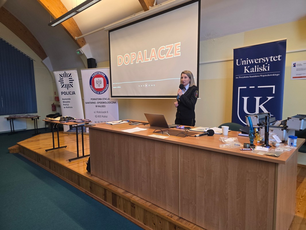 Kilkudziesięciu pedagogów, psychologów i wychowawców z Kalisza i powiatu kaliskiego wzięło udział w konferencji UZALEŻNIENIA A ZDROWIE, zorganizowanej przez kaliską Państwową Inspekcję Sanitarną we współpracy z Komendą Miejską Policji i Strażą Miejską, która miała miejsce na Uniwersytecie Kaliskim. Podczas spotkania rozmawiano o oddziaływaniu dopalaczy oraz innych środków psychoaktywnych na zdrowie człowieka, zwracając uwagę, iż ten problem istnieje cały czas wśród młodzieży.
