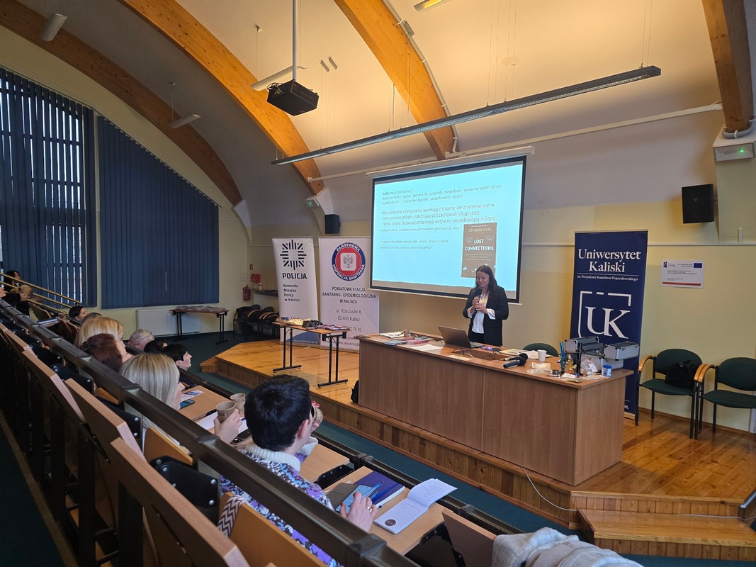 Trauma, uzależnienia, zdrowie psychiczne – to temat poruszany podczas wykładu pani Sylwii Dziedziczak, specjalistki terapii uzależnień, która zwróciła uwagę na zwiększającą się liczbę młodych ludzi potrzebujących pomocy specjalistów. T