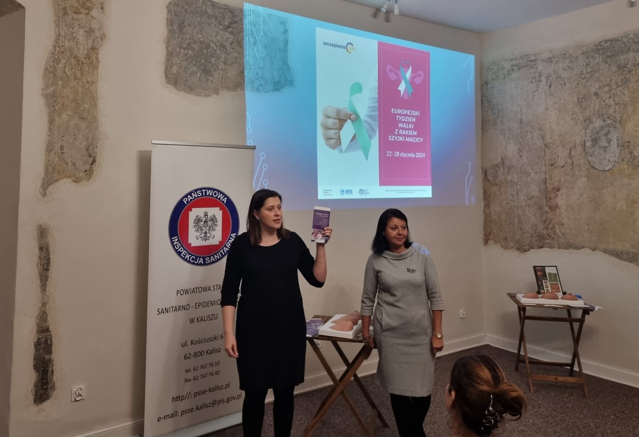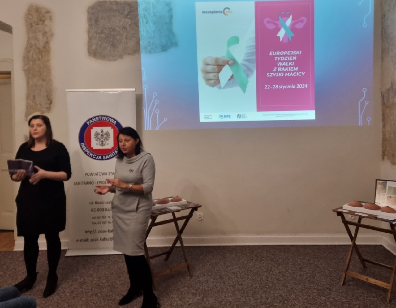 W ramach Europejskiego Tygodnia Walki z Rakiem Szyjki Macicy w dniach 22-25 stycznia 2024 roku pracownicy Sekcji Oświaty Zdrowotnej i Promocji Zdrowia Powiatowej Stacji Sanitarno-Epidemiologicznej w Kaliszu przeprowadzili 4 prelekcje.