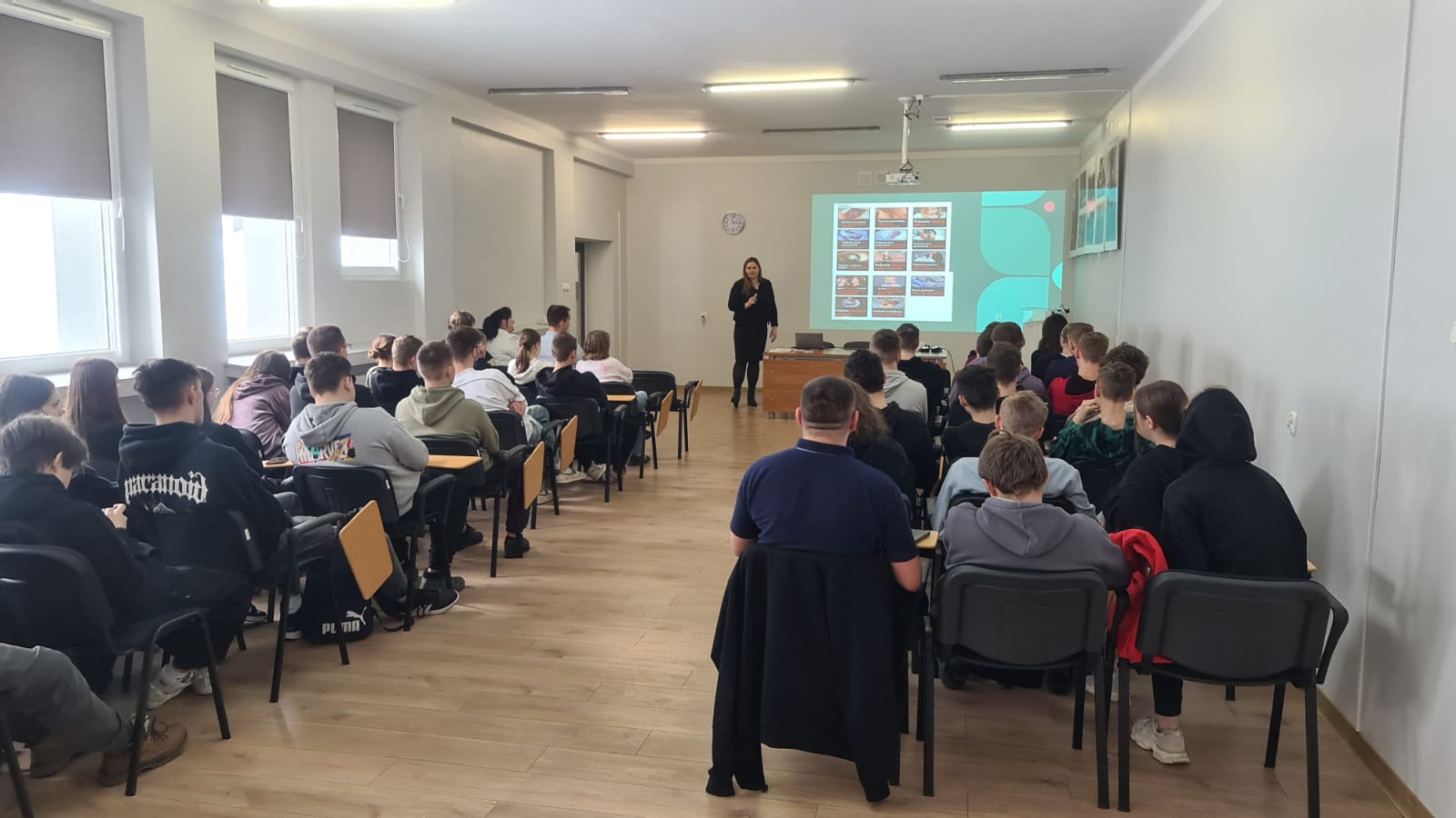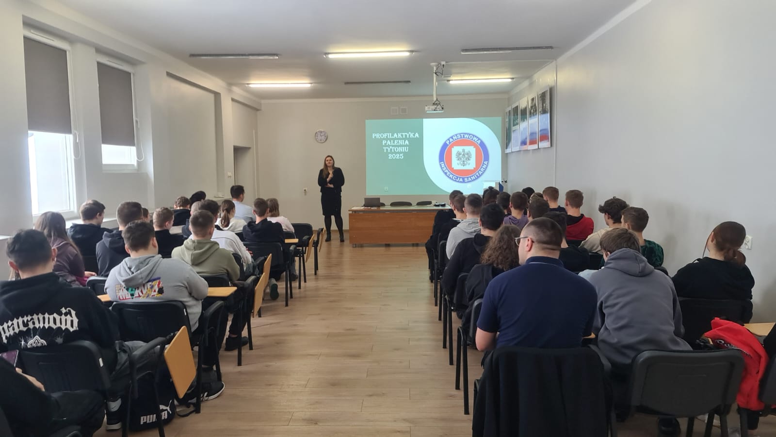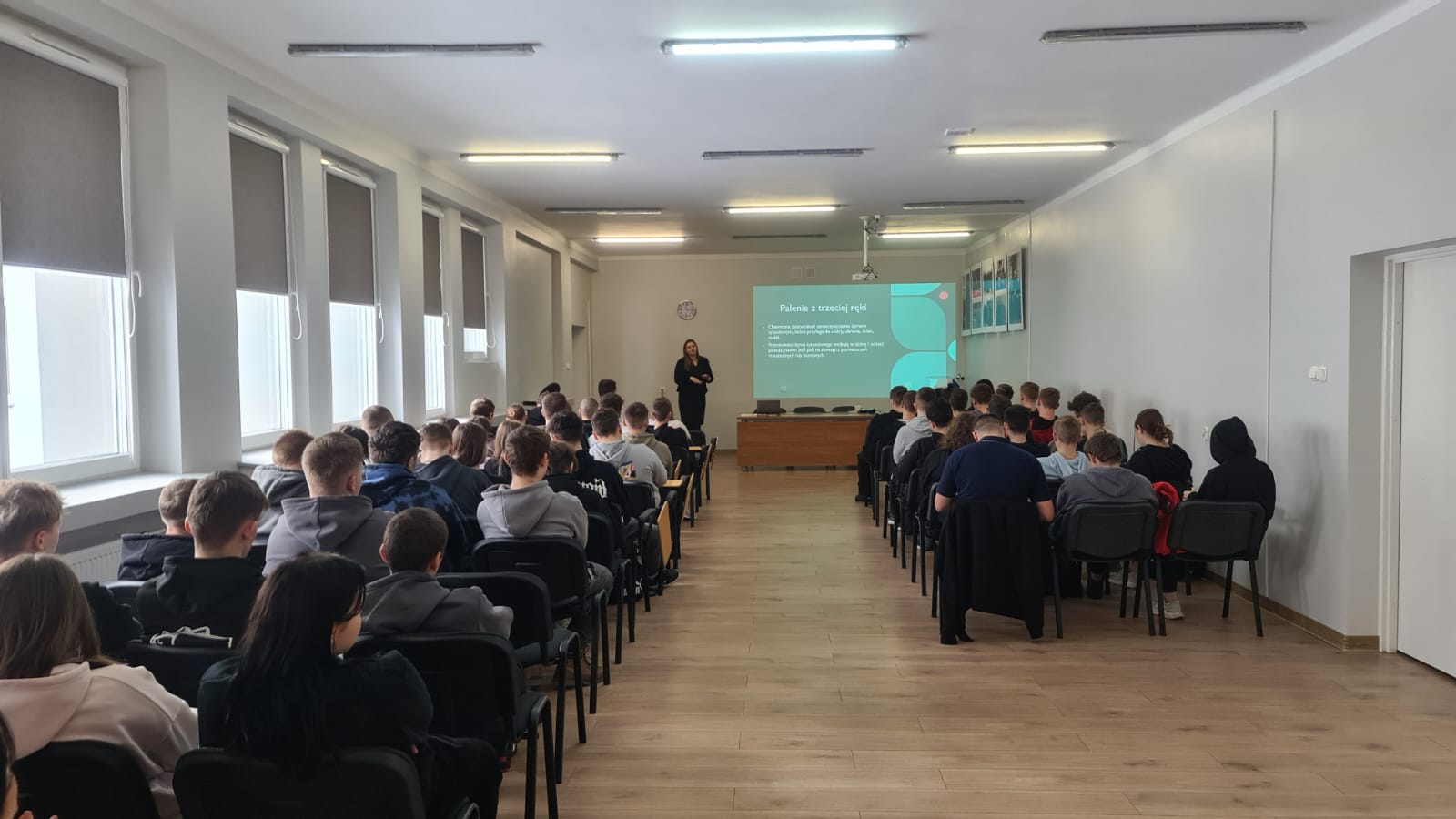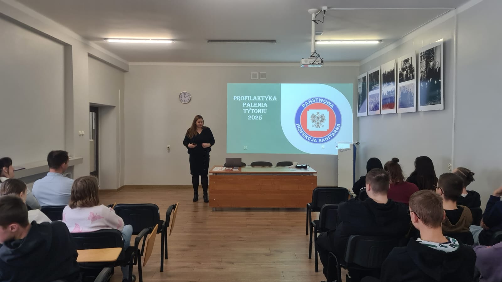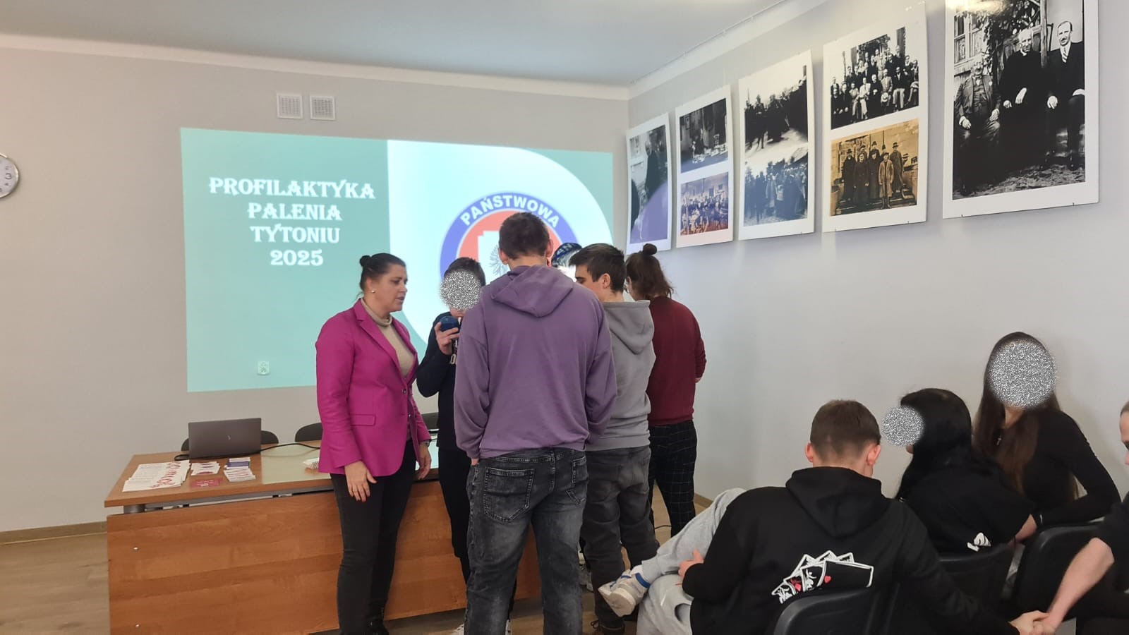 W dniu 14 lutego 2025 r. pracownicy Sekcji Oświaty Zdrowotnej i Promocji Zdrowia Powiatowej Stacji Sanitarno-Epidemiologicznej w Kaliszu: Agnieszka Stępniak i Joanna Jaroma-Woźniak, podjęli działania w ramach profilaktyki palenia tytoniu i używania nowatorskich wyrobów tytoniowych. Joanna Jaroma-Woźniak przeprowadziła pogadankę, podczas której poruszono m.in. kwestię szkodliwości palenia papierosów, e-papierosów i tytoniu podgrzewanego, biernego palenia, tzw. palenia z trzeciej ręki.