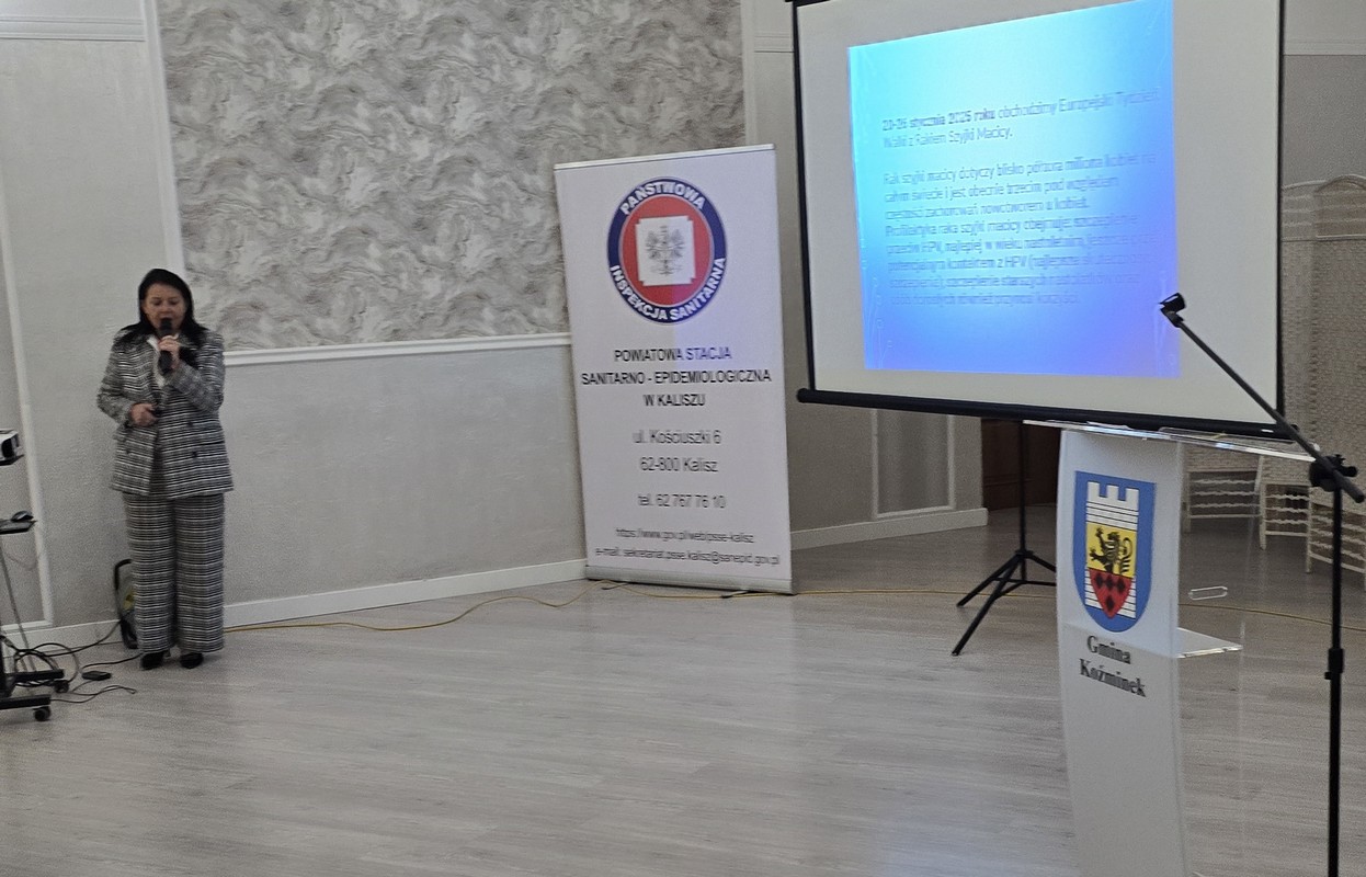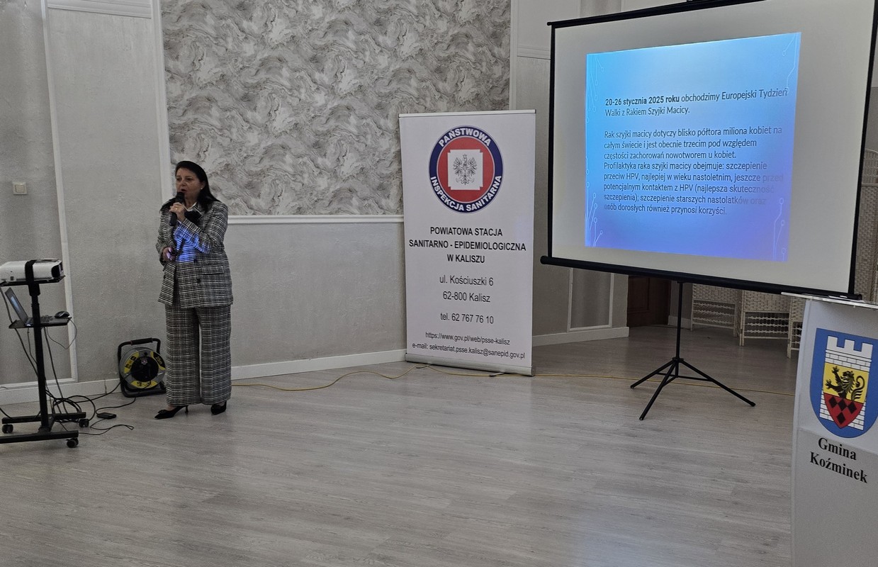 Na zaproszenie pani Burmistrz Moniki Nowak odbyło się spotkanie z członkami KGW w Koźminku, podczas którego Kierownik Sekcji OZ i PZ Elżbieta Wojtyła, poinformowała i przedstawiła prezentację informującą iż w dniach 20-26 stycznia 2025 roku będzie obchodzony Europejski Tydzień Walki z Rakiem Szyjki Macicy.