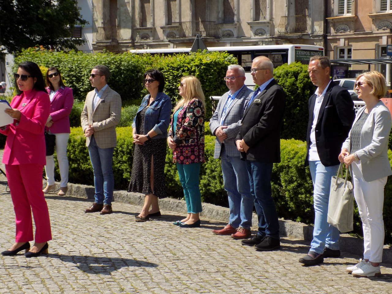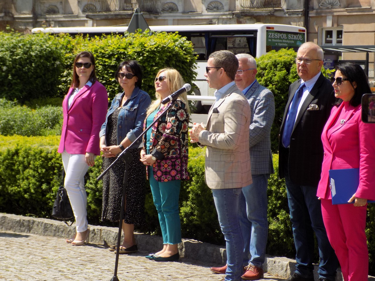 z panią wicedyrektor Małgorzatą Kołodziej, MDK im. W, Broniewskiego z panią dyrektor Beatą Paszak, służb mundurowych zarówno Policji jak i Straży Miejskiej Kalisza, prezes Szkolnego Związku Sportowego Waldemar Olszyna