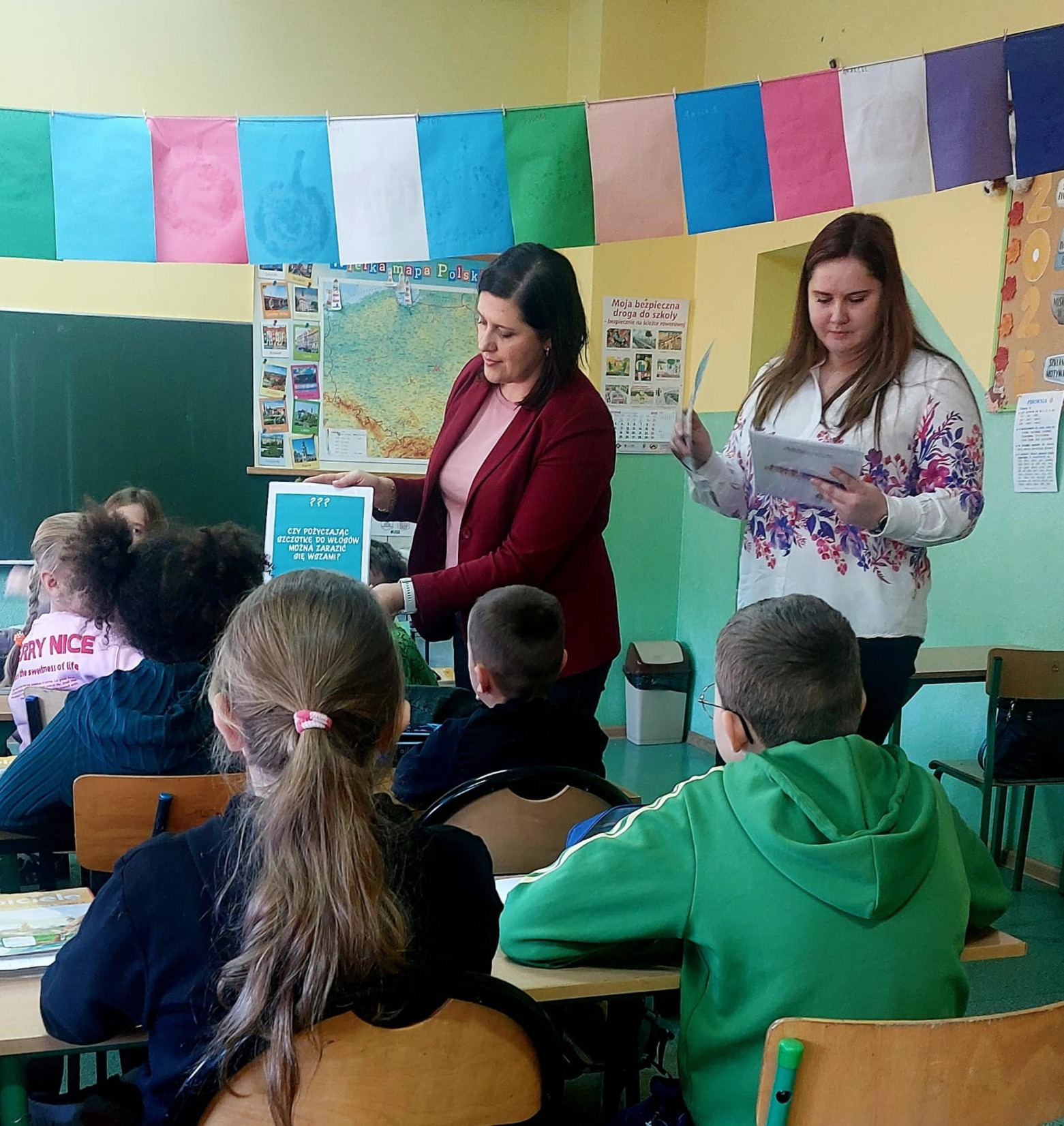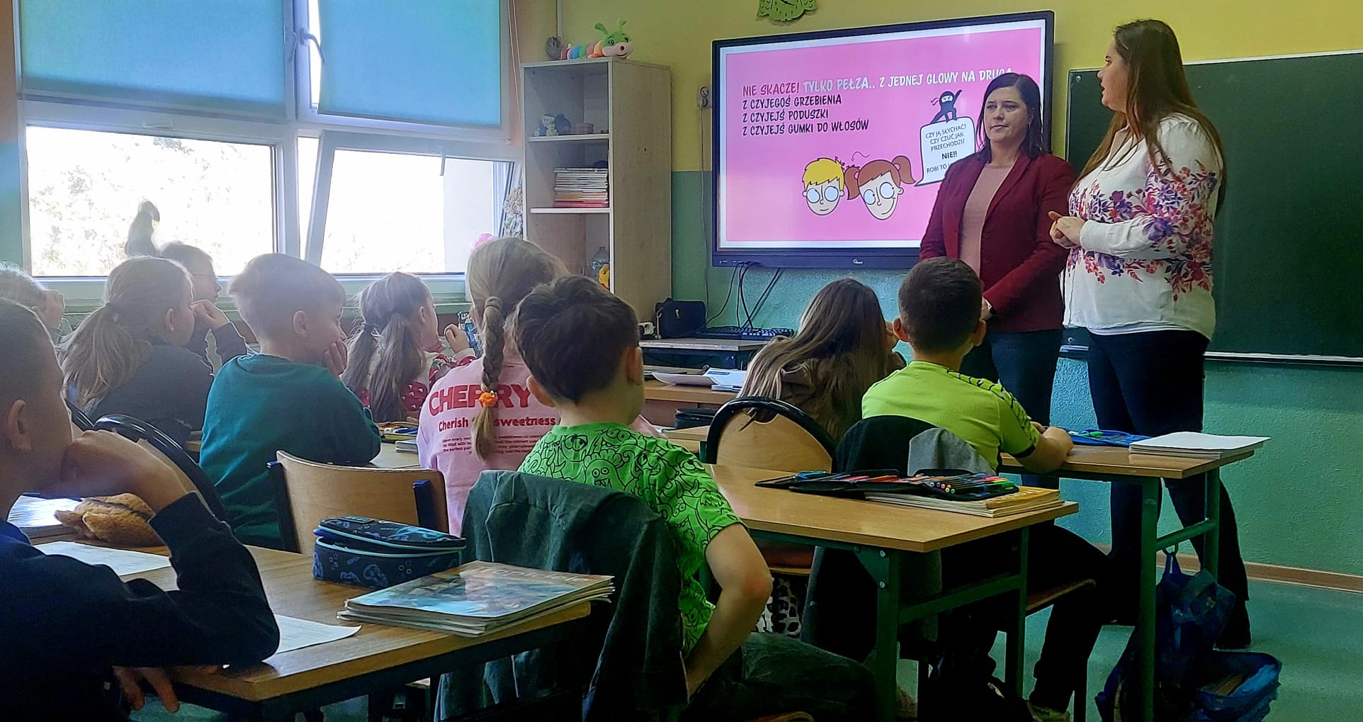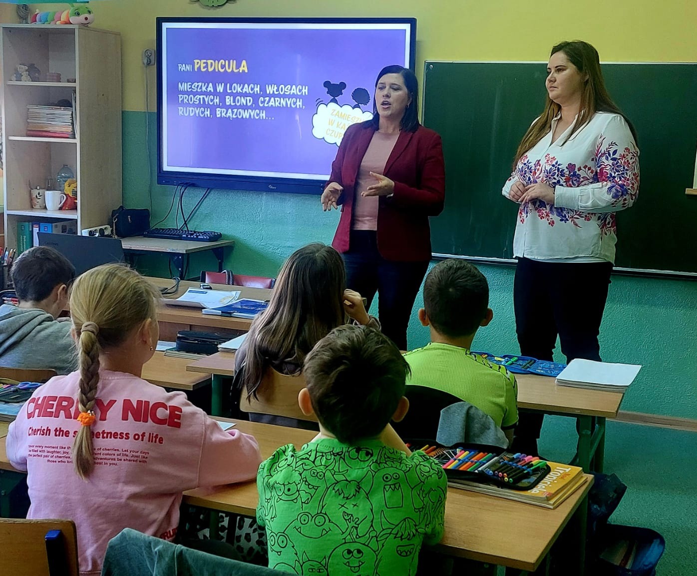 W trakcie zajęć, przygotowanych na podstawie materiałów opracowanych przez Wojewódzką Stację Sanitarno-Epidemiologiczną w Poznaniu, uczniowie klasy III zdobywali wiedzę na temat profilaktyki wszawicy – jej objawów, sposobów zapobiegania oraz zasad higieny osobistej.