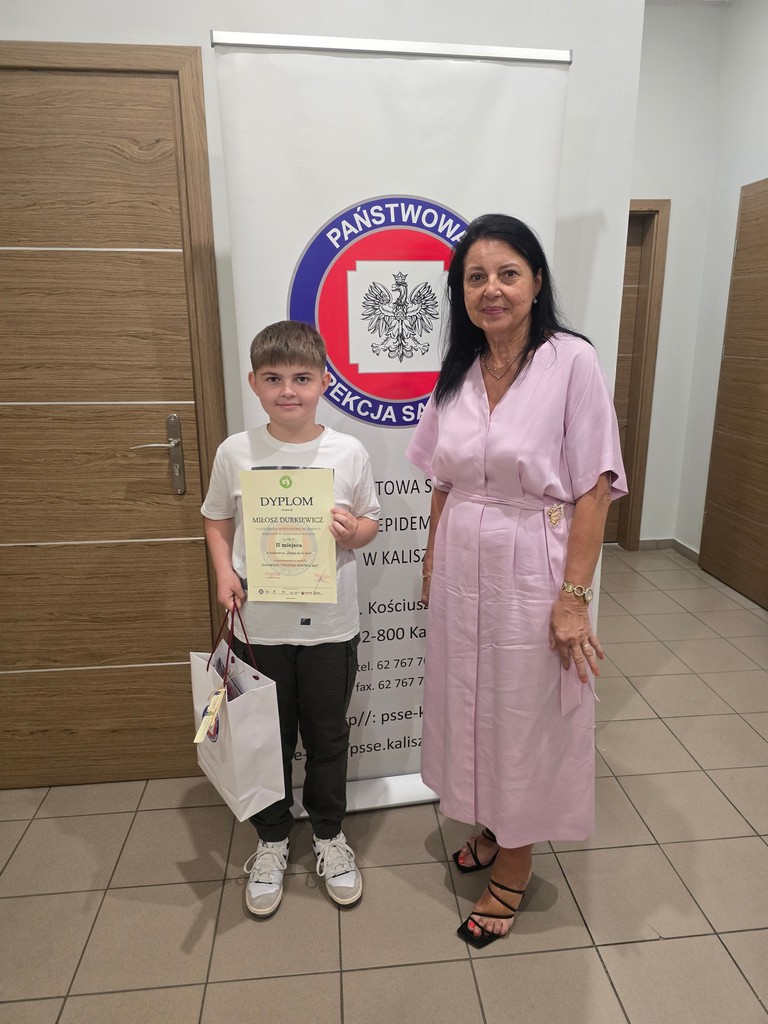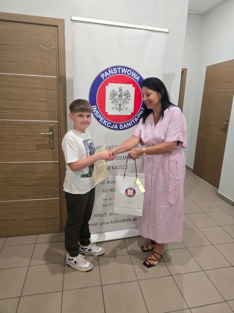 Niestety nie mógł odebrać nagrody 9 czerwca podczas uroczystego podsumowania Kaliskiego Tygodnia Zdrowia dlatego w dniu dzisiejszym, Kierownik Elżbieta Wojtyła Sekcji OZ i PZ w PSSE w Kaliszu wręczyła laureatowi nagrodę. Gratulujemy!!!