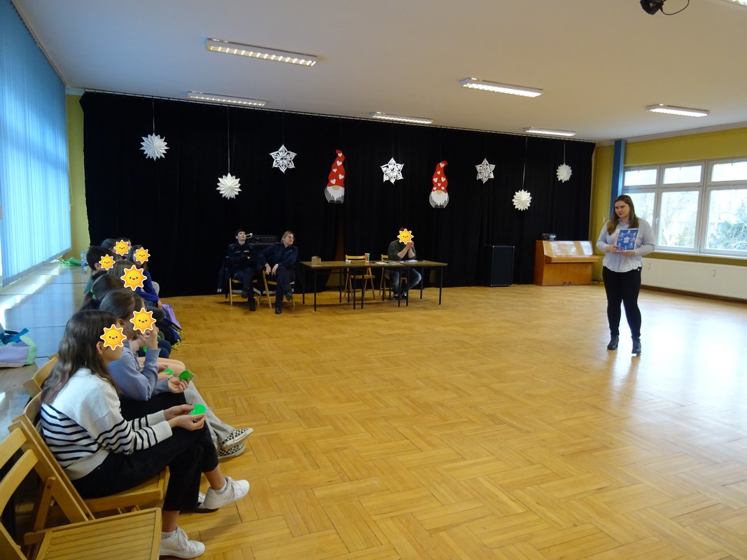 Wśród uczestników półkolonii Joanna Jaroma-Woźniak z Sekcji OZiPZ przeprowadziła m.in. pogadankę podczas której poruszono tematykę prawidłowego odżywiania, aktywności fizycznej, higieny osobistej, napojów energetyzujących, a także szkodliwości palenia papierosów oraz inhalowania e-papierosów.