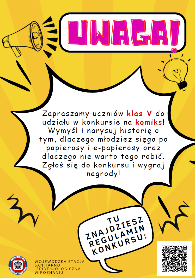 Konkurs dla uczniów klas V szkół podstawowych na komiks pt.: „Palić, nie palić–oto jest pytanie?”