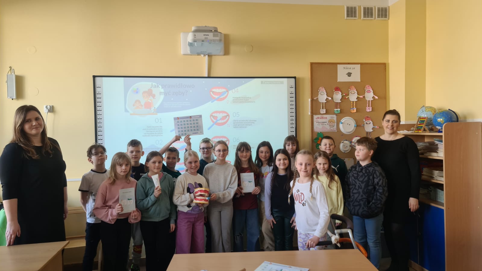 7 marca 2024 r. w Szkole Podstawowej w Piotrowie pracownicy Sekcji Oświaty Zdrowotnej i Promocji Zdrowia Powiatowej Stacji Sanitarno-Epidemiologicznej w Kaliszu Agnieszka Stępniak i Joanna Jaroma-Woźniak w ramach wojewódzkiego projektu edukacyjnego „Mam zdrowe zęby!” przeprowadzili 2 pogadanki z instruktażem prawidłowego mycia zębów wśród wybranych przez dyrektora szkoły uczniów z klas II i III.