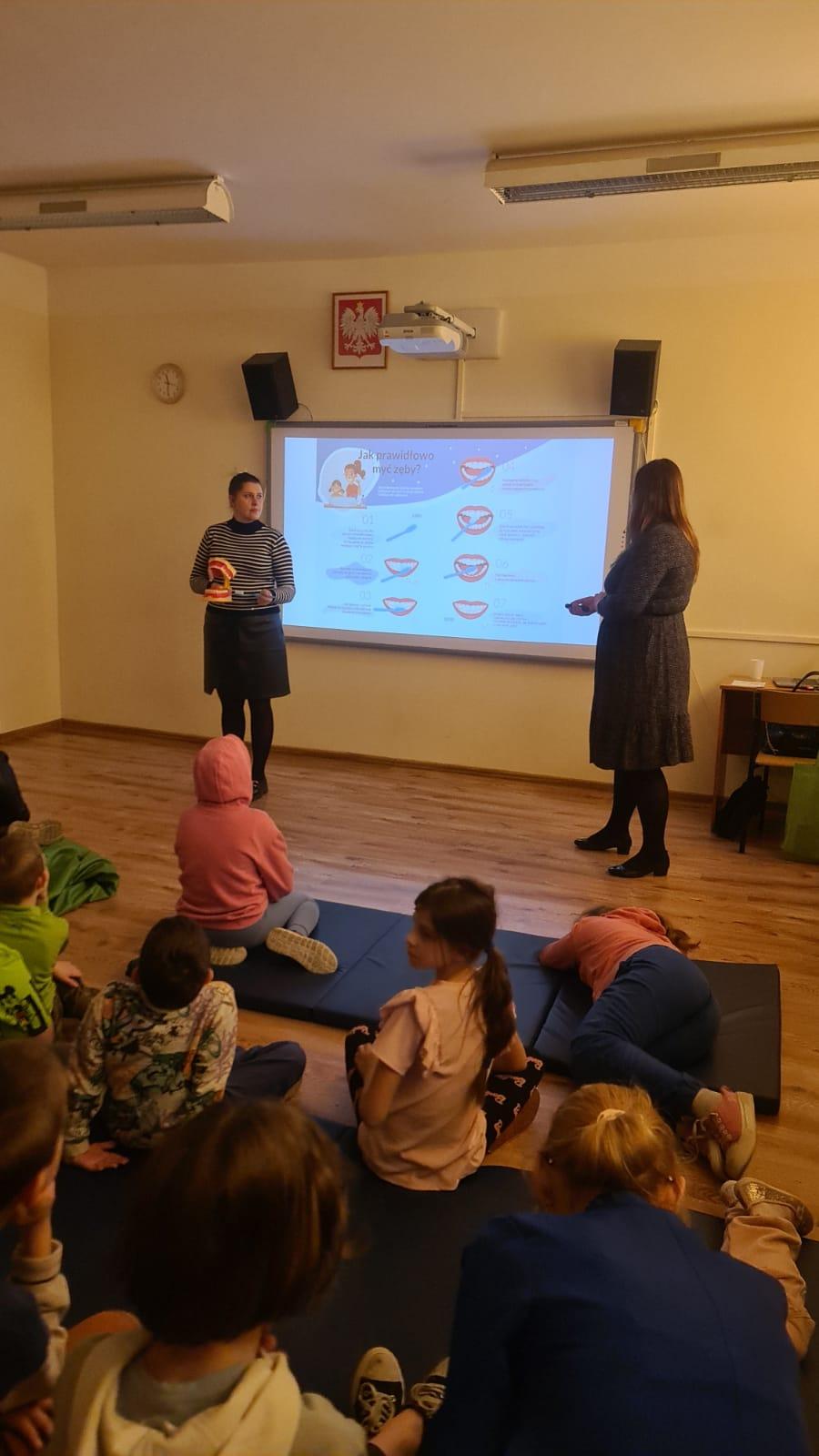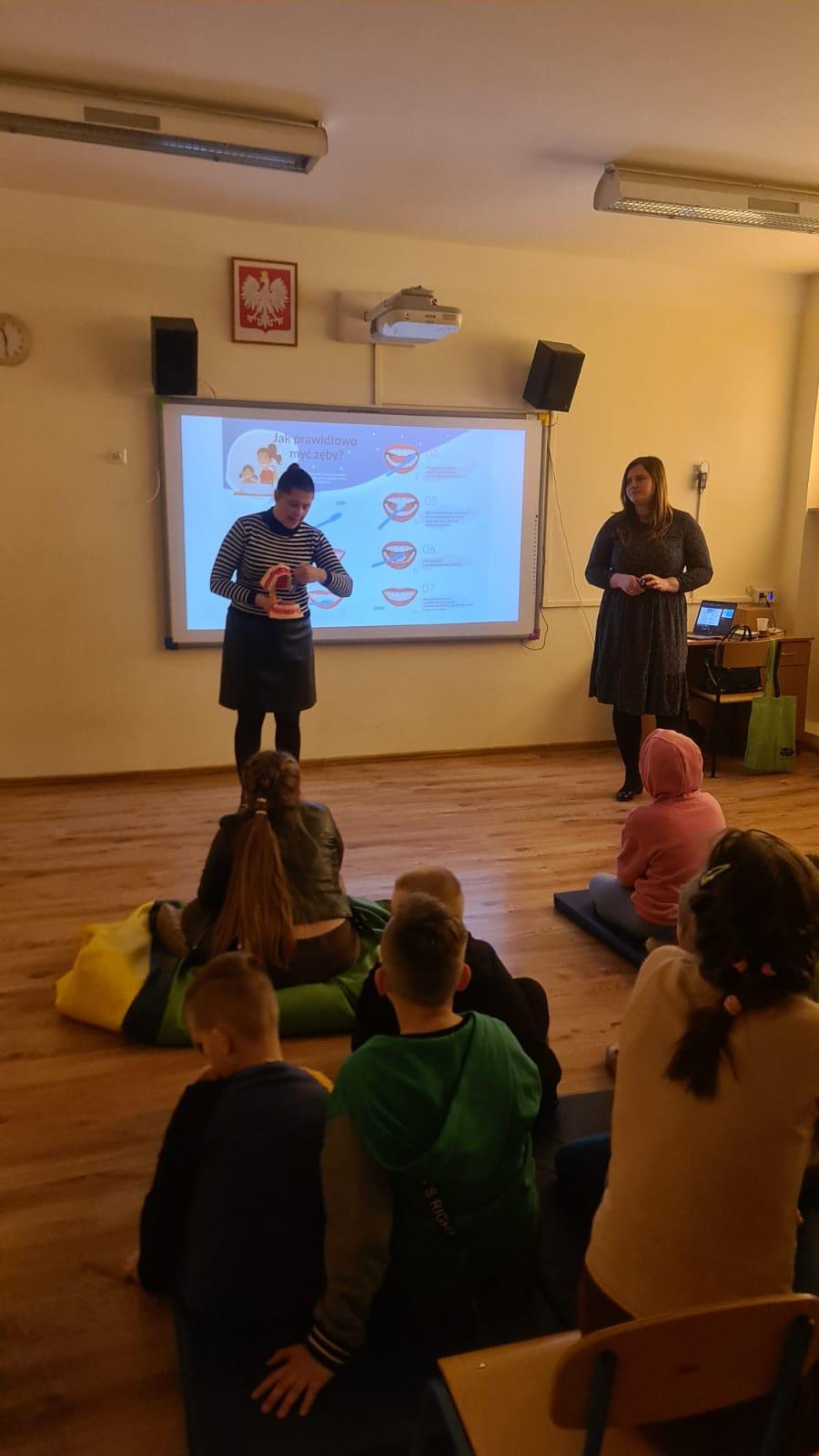 23 kwietnia 2024 r. w Szkole Podstawowej nr 19 w Kaliszu, pracownicy Sekcji Oświaty Zdrowotnej i Promocji Zdrowia Powiatowej Stacji Sanitarno-Epidemiologicznej w Kaliszu Agnieszka Stępniak i Joanna Jaroma-Woźniak, w ramach wojewódzkiego projektu edukacyjnego „Mam zdrowe zęby!” przeprowadzili pogadankę z instruktażem prawidłowego mycia zębów oraz dotyczącą higieny rąk wśród uczniów młodszych klas szkoły.