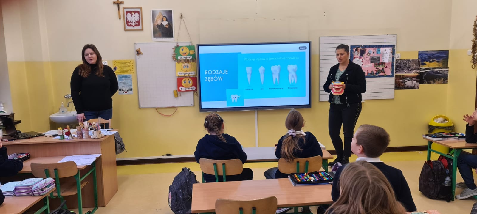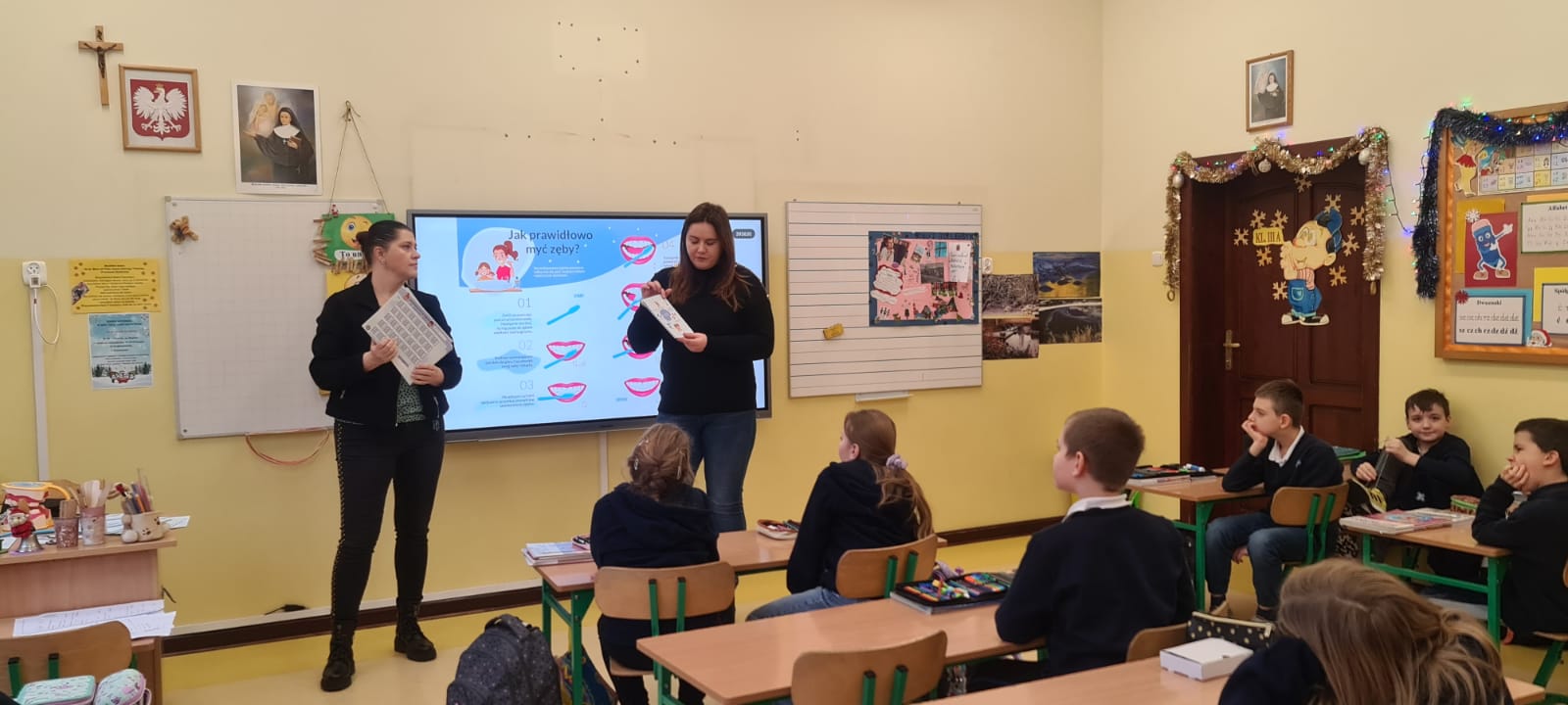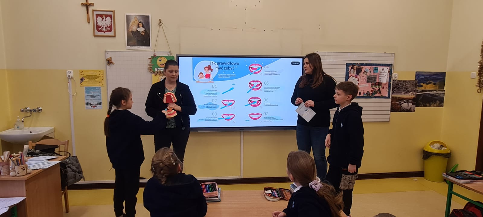Tym razem pogadankę z instruktażem prawidłowego mycia zębów zrealizowano wśród uczniów jednej, losowo wybranej klasy Szkoły Podstawowej Sióstr Nazaretanek w Kaliszu.