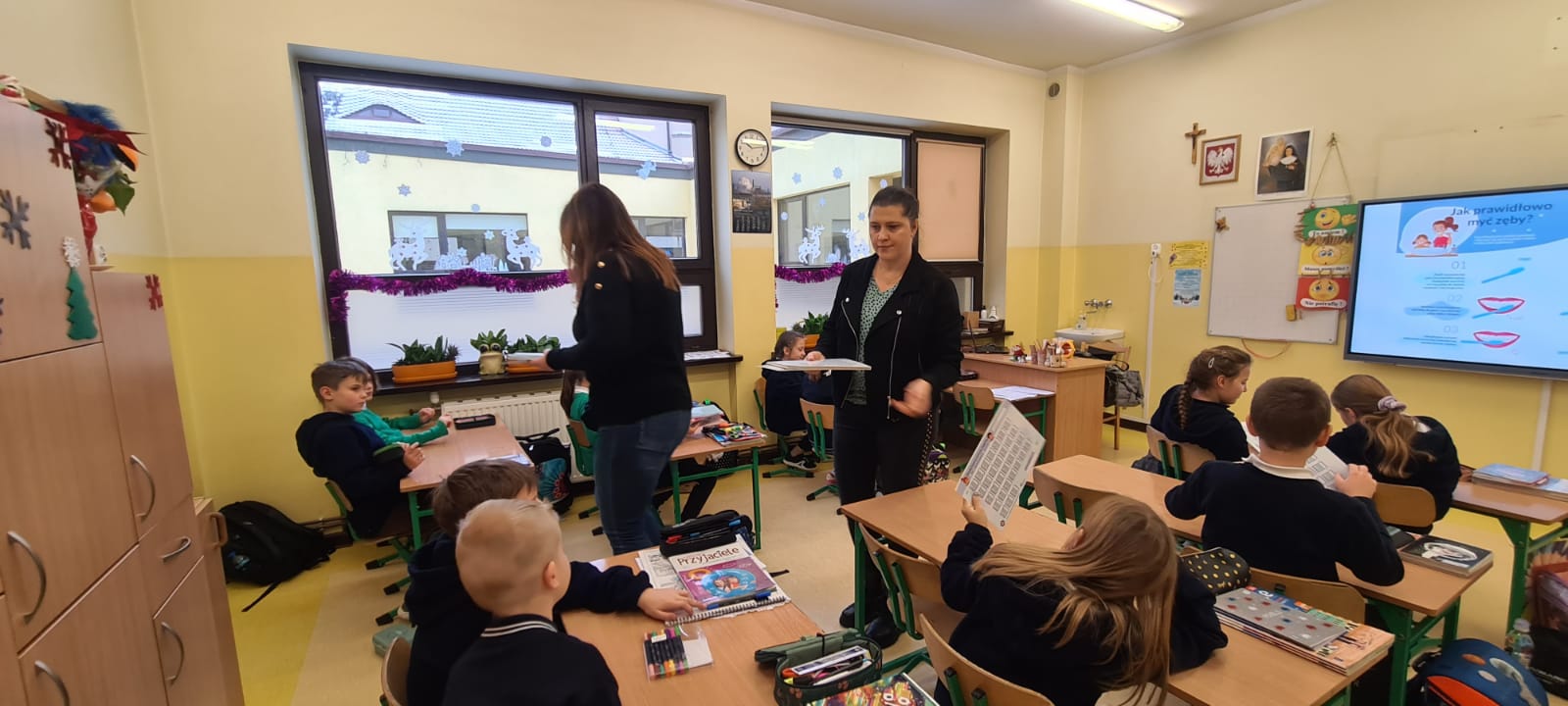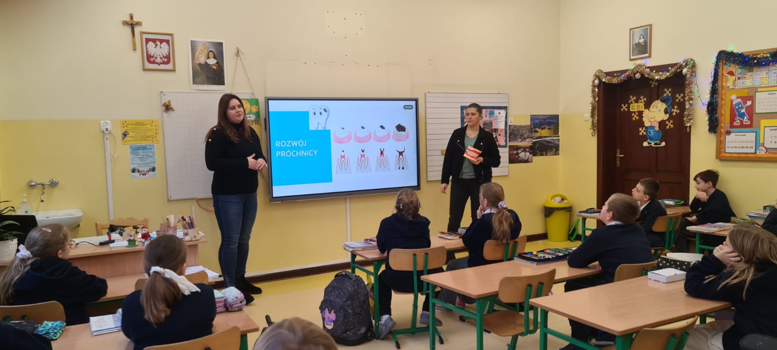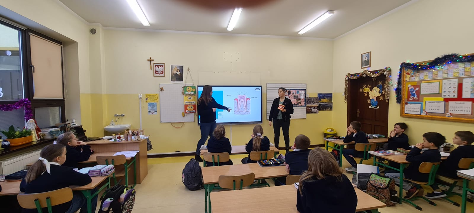 Tym razem pogadankę z instruktażem prawidłowego mycia zębów zrealizowano wśród uczniów jednej, losowo wybranej klasy Szkoły Podstawowej Sióstr Nazaretanek w Kaliszu.