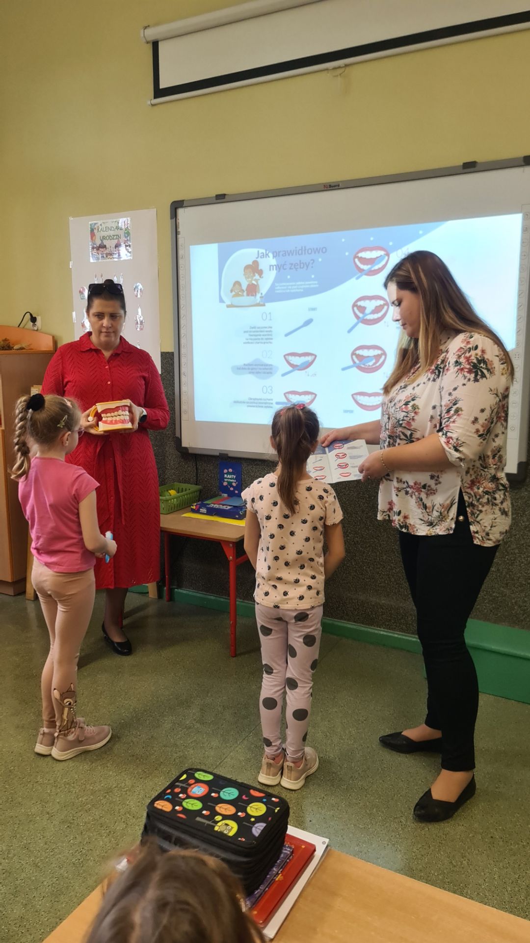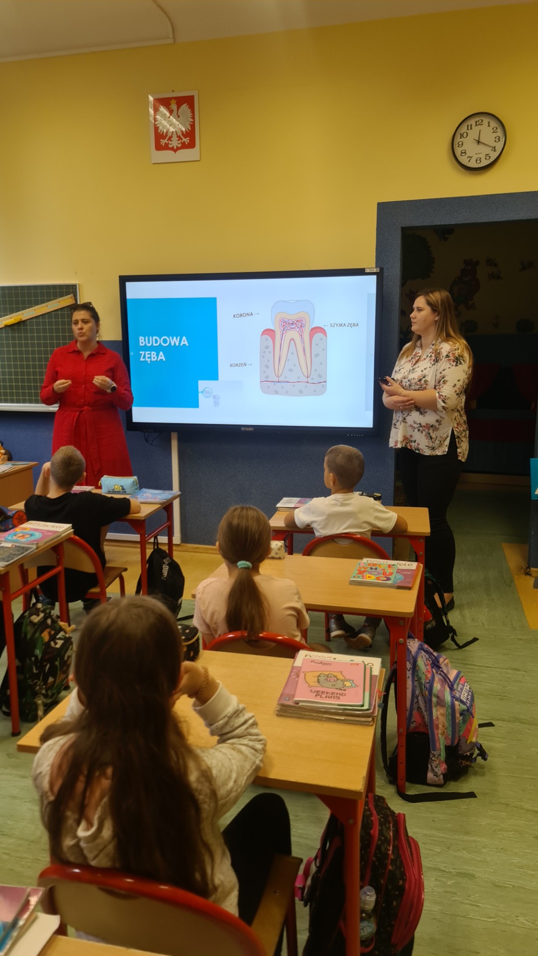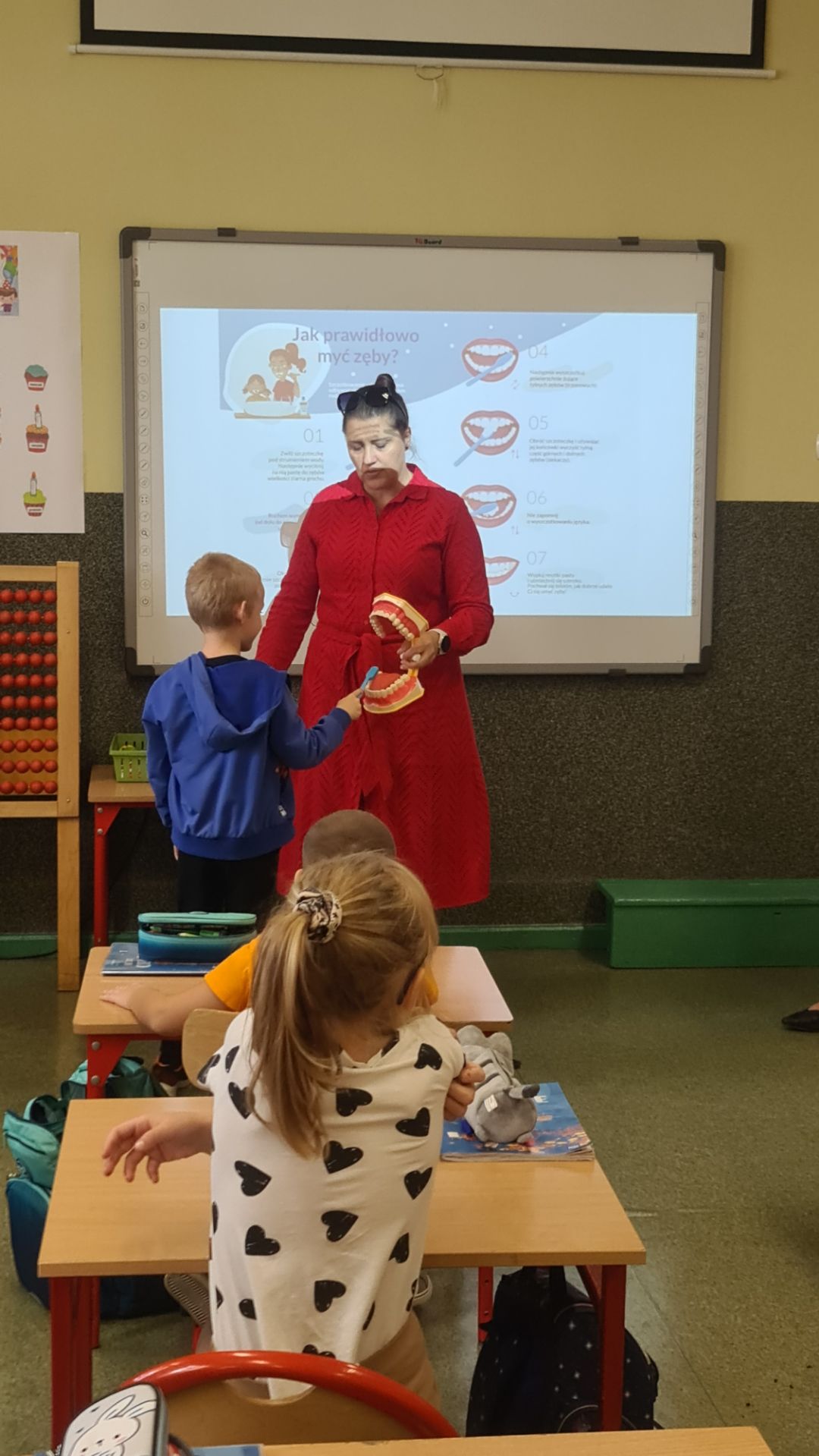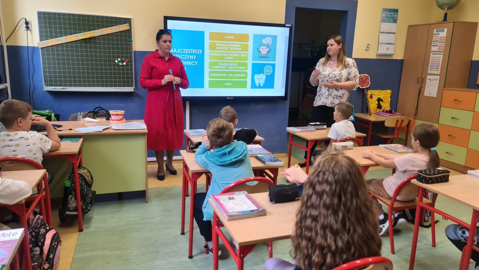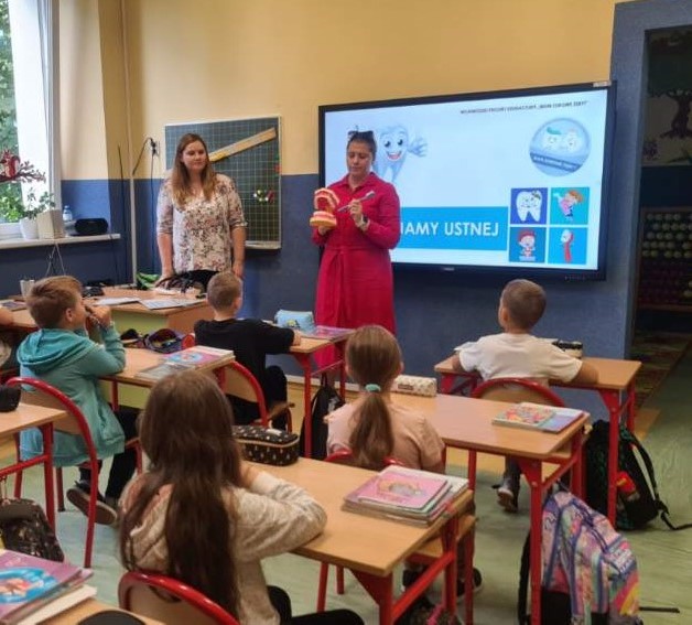 W dniu 10 października 2024 r. pracownicy Sekcji Oświaty Zdrowotnej i Promocji Zdrowia Powiatowej Stacji Sanitarno-Epidemiologicznej w Kaliszu Agnieszka Stępniak i Joanna Jaroma-Woźniak, w ramach wojewódzkiego projektu edukacyjnego „Mam zdrowe zęby!” przeprowadzili kolejne zajęcia dotyczące higieny jamy ustnej.