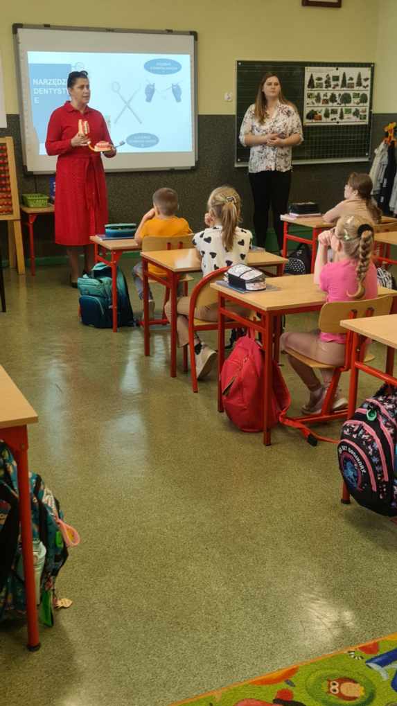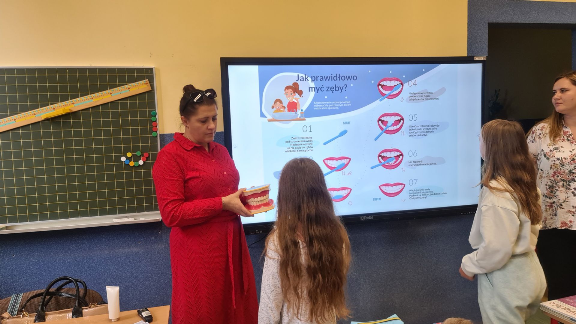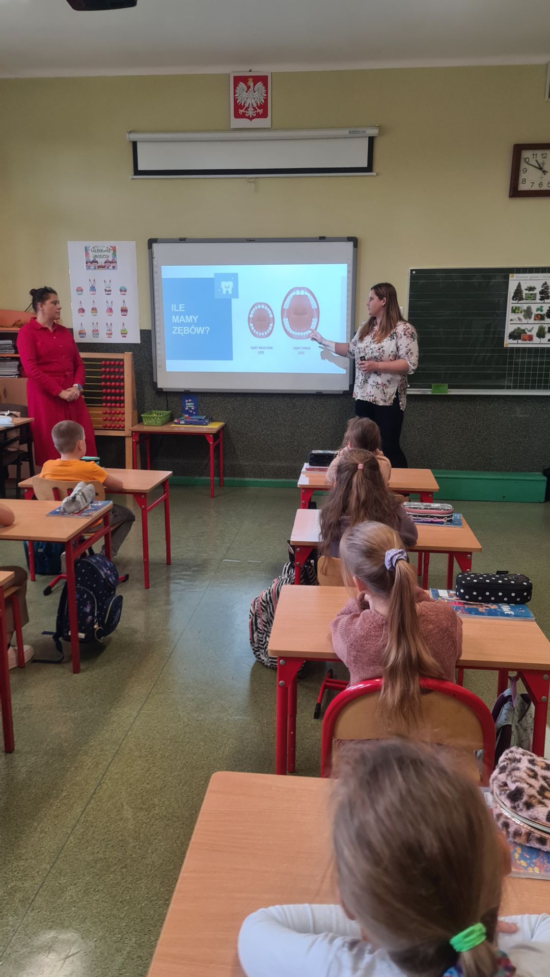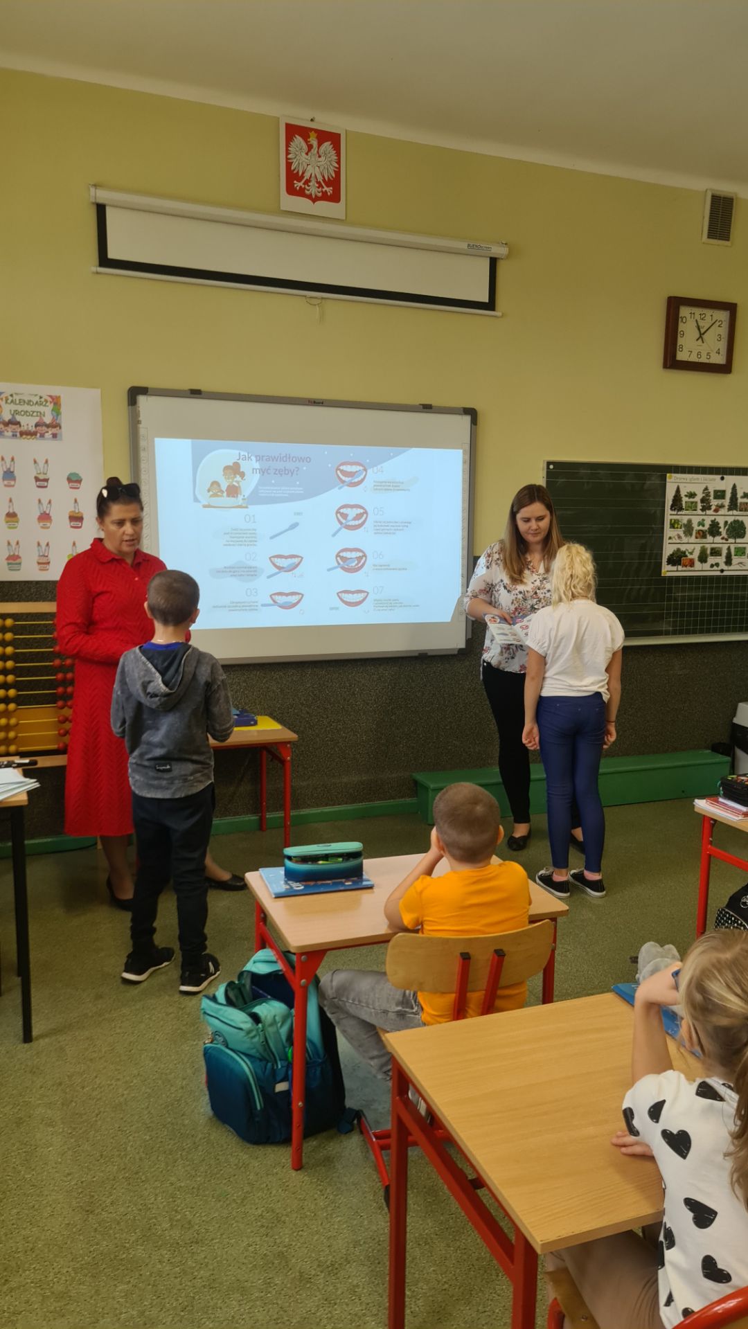 W dniu 10 października 2024 r. pracownicy Sekcji Oświaty Zdrowotnej i Promocji Zdrowia Powiatowej Stacji Sanitarno-Epidemiologicznej w Kaliszu Agnieszka Stępniak i Joanna Jaroma-Woźniak, w ramach wojewódzkiego projektu edukacyjnego „Mam zdrowe zęby!” przeprowadzili kolejne zajęcia dotyczące higieny jamy ustnej.