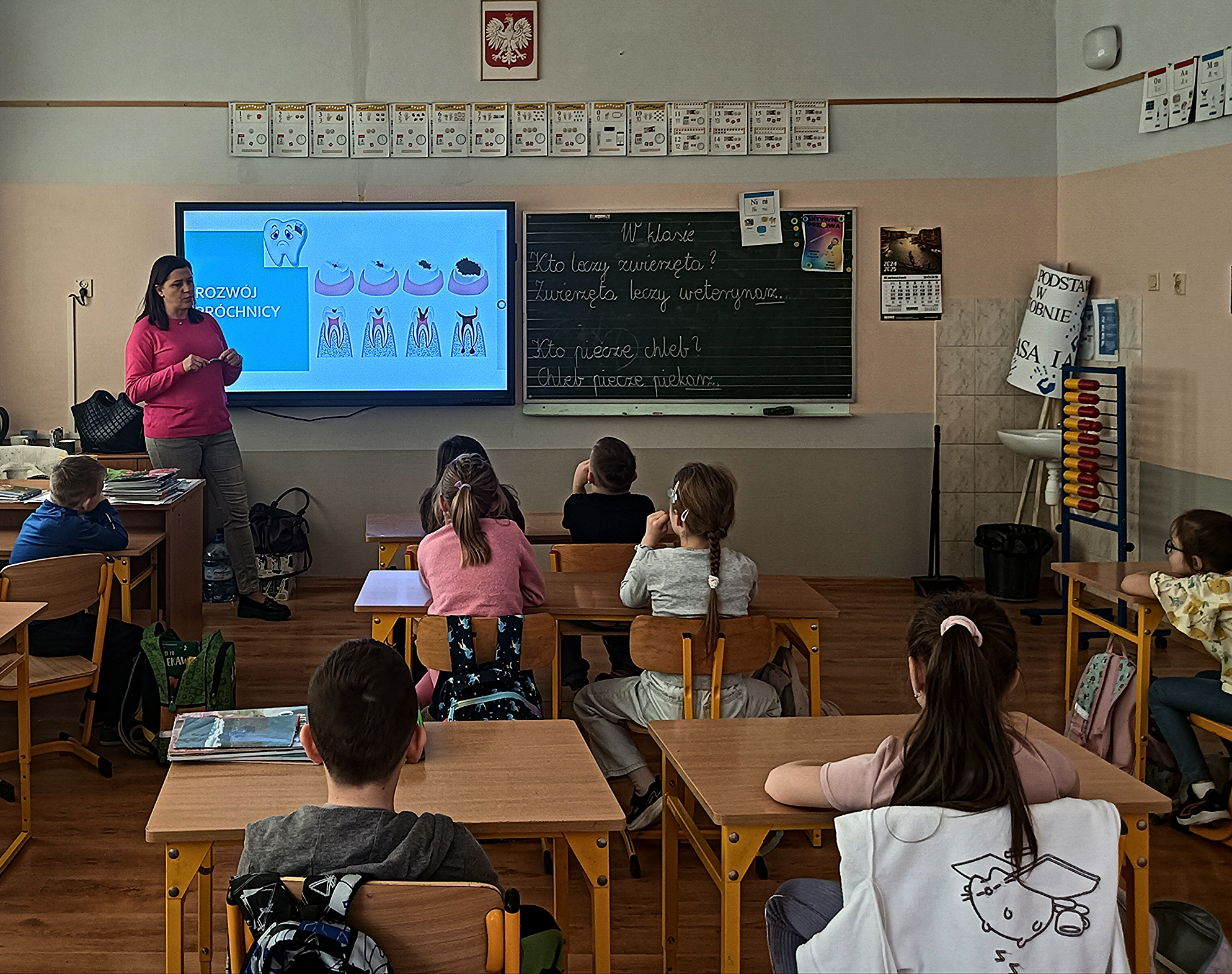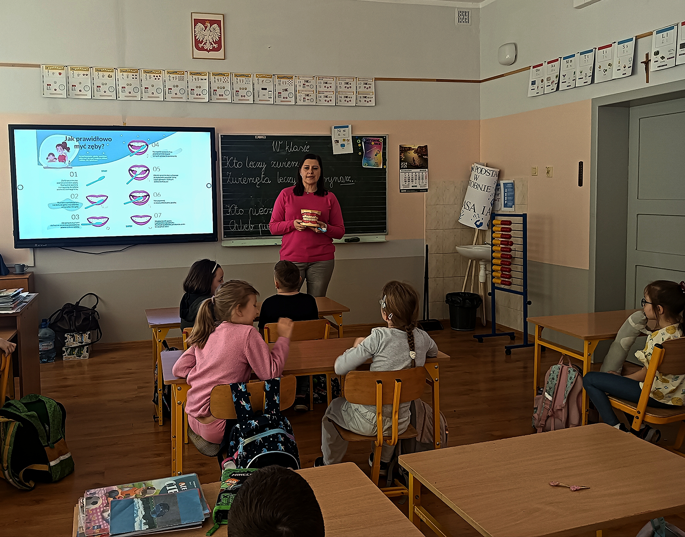 W dniu 8 kwietnia 2025 r. pracownik Sekcji Oświaty Zdrowotnej i Promocji Zdrowia Powiatowej Stacji Sanitarno-Epidemiologicznej w Kaliszu - Agnieszka Stępniak przeprowadziła zajęcia dotyczące higieny jamy ustnej, w ramach wojewódzkiego projektu edukacyjnego „Mam zdrowe zęby!”.