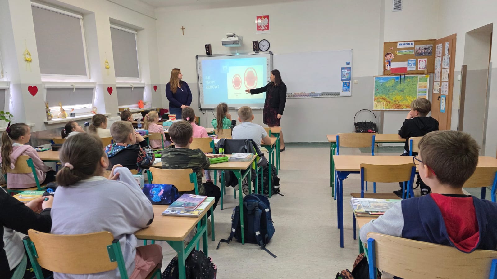 Kolejne zajęcia dotyczące higieny jamy ustnej, w ramach wojewódzkiego projektu edukacyjnego „Mam zdrowe zęby!” zostały przeprowadzone w dniu 22 maja 2025 r. przez pracowników Sekcji Oświaty Zdrowotnej i Promocji Zdrowia Powiatowej Stacji Sanitarno-Epidemiologicznej w Kaliszu - Agnieszkę Stępniak i Joannę Jaroma-Woźniak.