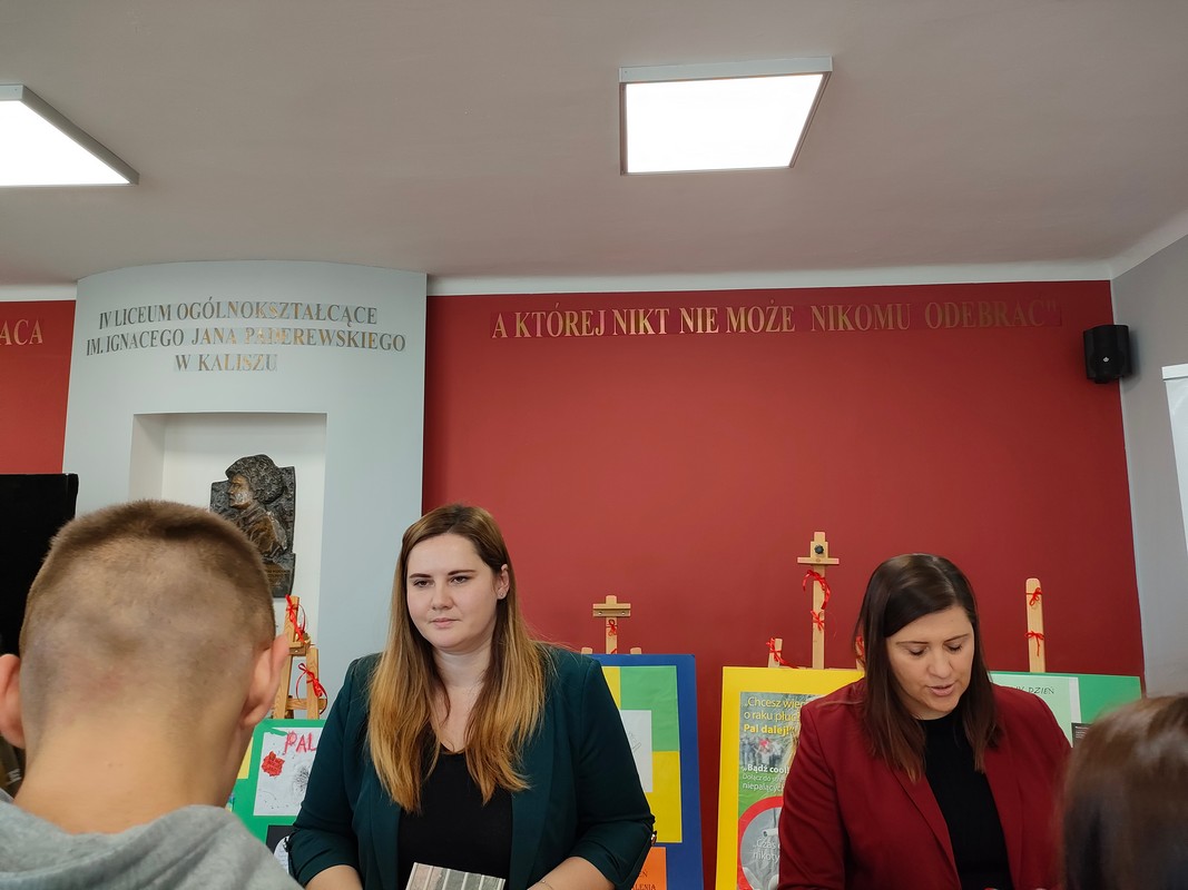 W dniu 21 listopada 2024 r. w ramach obchodów Światowego Dnia Rzucania Palenia pracownicy Sekcji Oświaty Zdrowotnej i Promocji Zdrowia Powiatowej Stacji Sanitarno- Epidemiologicznej w Kaliszu, włączyli się w obchody zorganizowane we współpracy z IV Liceum Ogólnokształcącym im. Ignacego Jana Paderewskiego w Kaliszu.