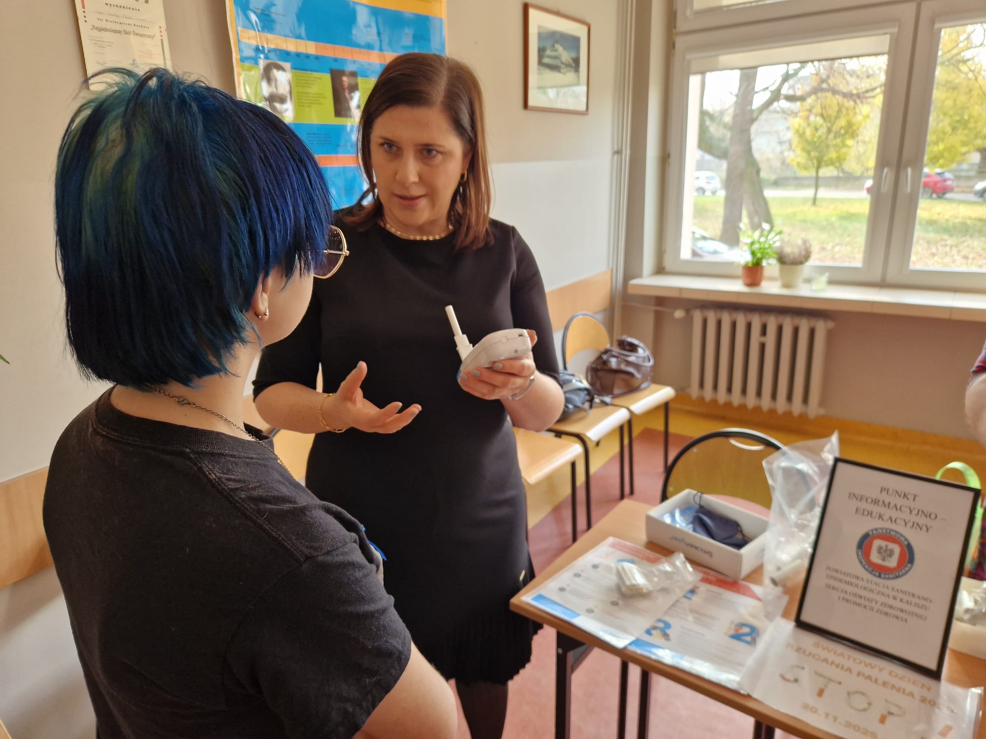 Następnie pracownicy inspekcji w zorganizowanym punkcie informacyjno- edukacyjnym prowadzili badania smokerlyzerem, rozmowy indywidualne/ poradnictwo oraz dystrybucję materiałów edukacyjnych.