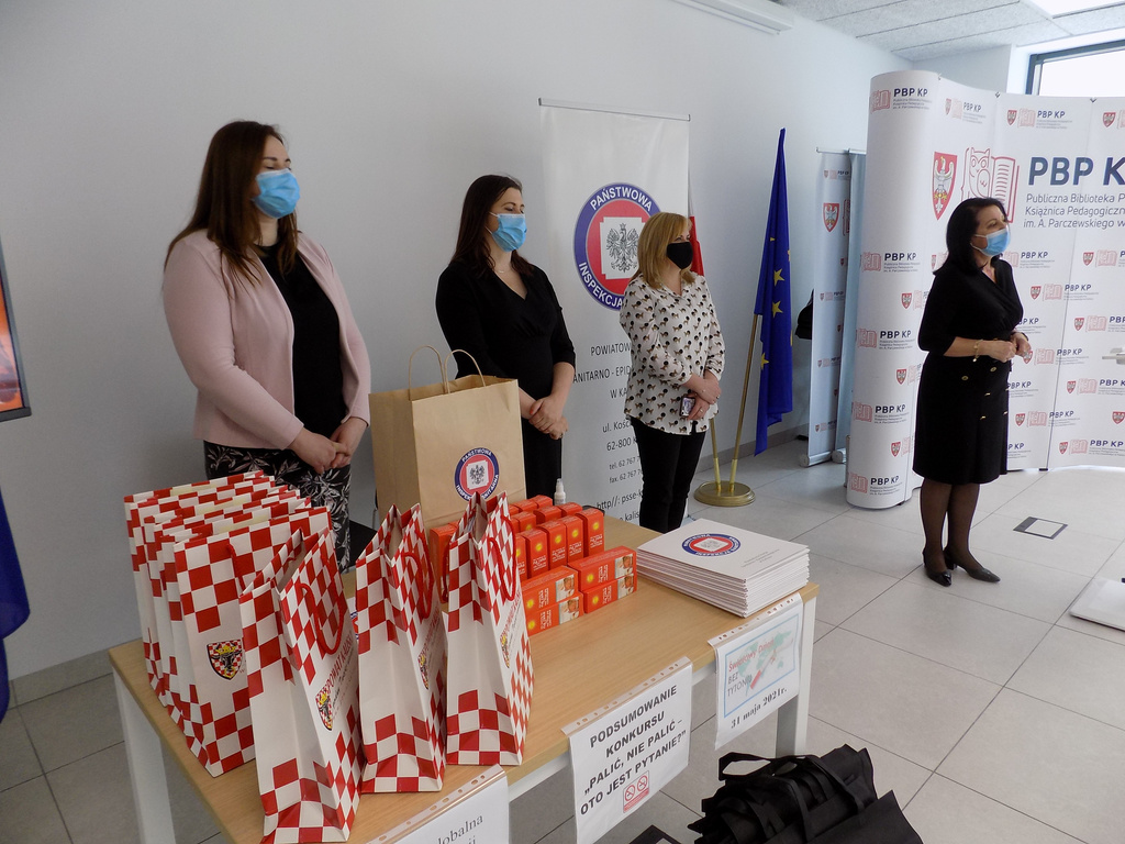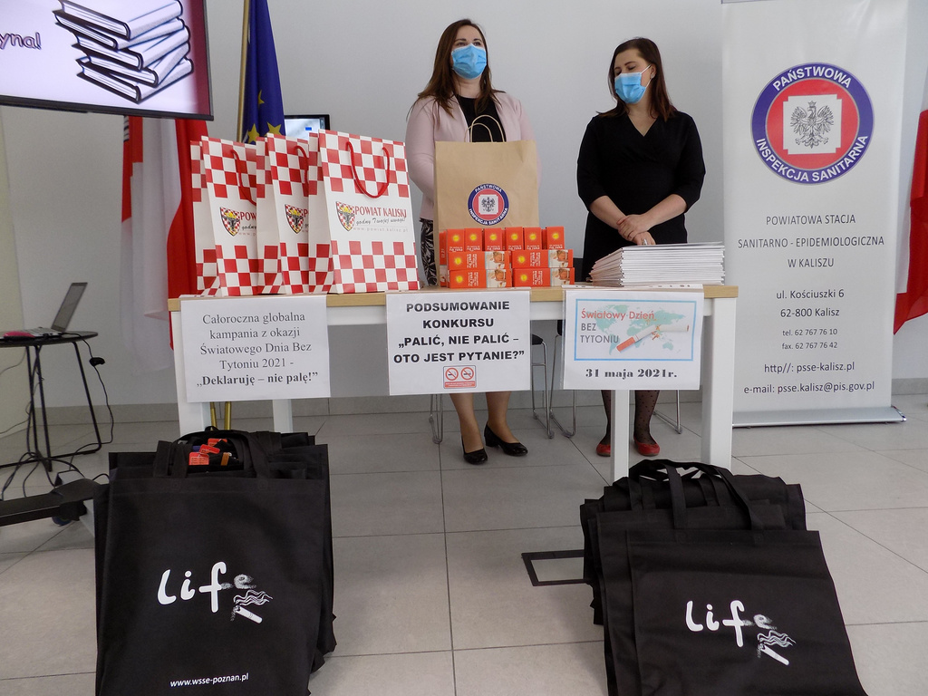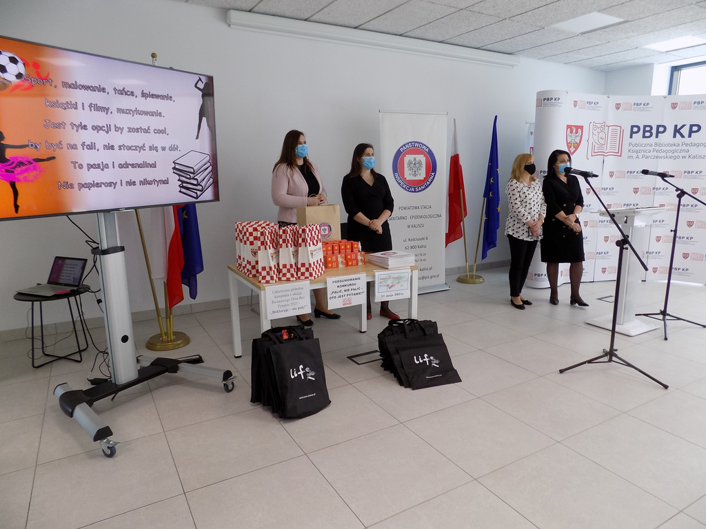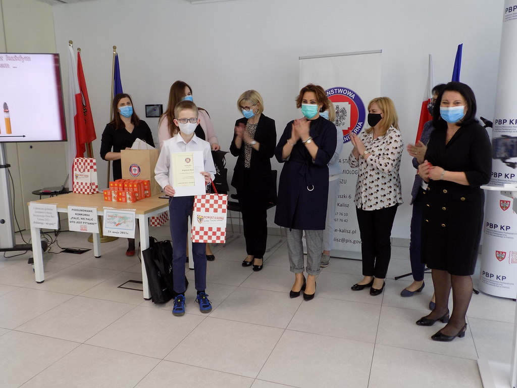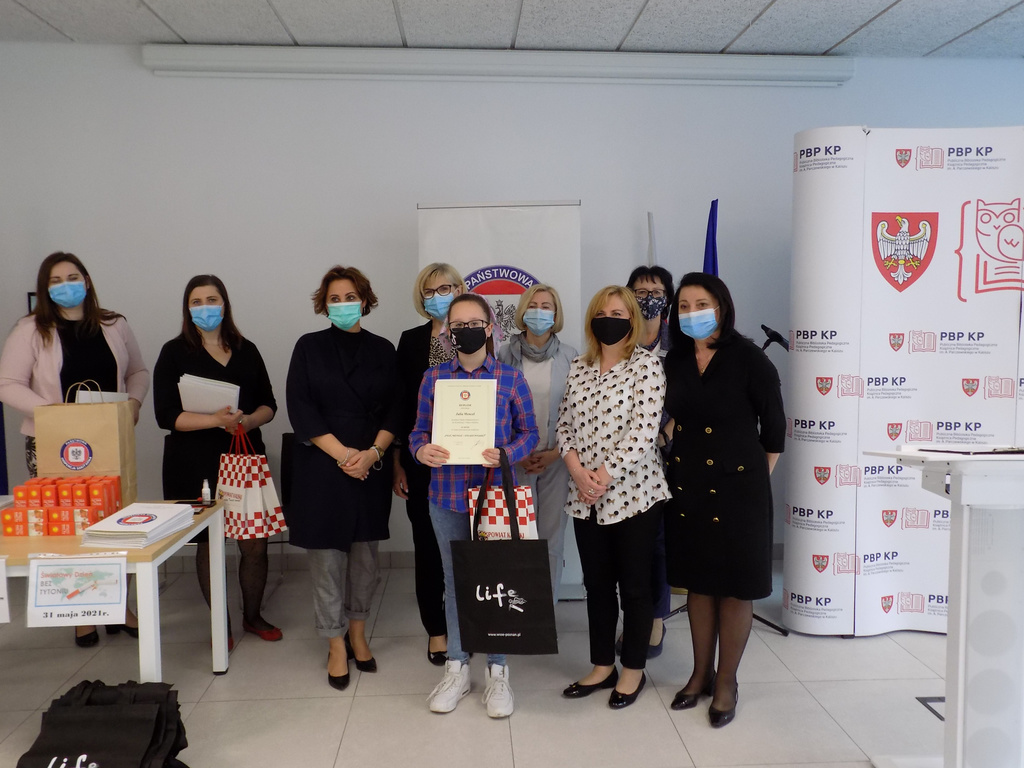 31.05.2021r. w Książnicy Pedagogicznej w Kaliszu, w Światowy Dzień bez Tytoniu odbyło się podsumowanie etapu powiatowego XXI edycja konkursu dotyczącego profilaktyki palenia tytoniu i inhalowania e-papierosów pt.: „Palić, nie palić – oto jest pytanie?”. Organizatorem konkursu jest Wojewódzka Stacja Sanitarno- Epidemiologiczna w Poznaniu a partnerami Kuratorium Oświaty w Poznaniu oraz Wielkopolskie Centrum Onkologii. Zadanie konkursowe polegało na przygotowaniu prezentacji multimedialnej promującej niepalenie. którego zadaniem było wykonanie prezentacji multimedialnej pod hasłem „Palić, nie palić – oto jest pytanie?” nt. palenia tytoniu i używania e-papierosów.
