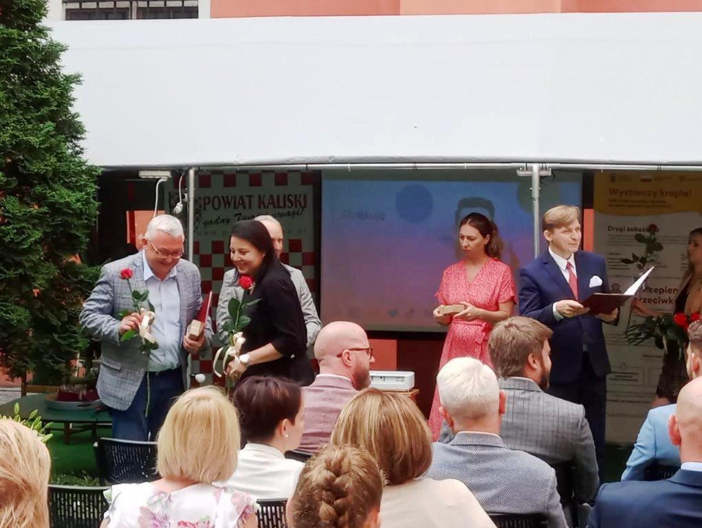 Na zakończenie konferencji Krzysztof Nosal - Starosta Kaliski oraz Jan Adam Kłysz - Przewodniczący Rady Powiatu Kaliskiego wręczyli podziękowania dla pracowników służby zdrowia zaangażowanych w czasie pandemii COVID-19.